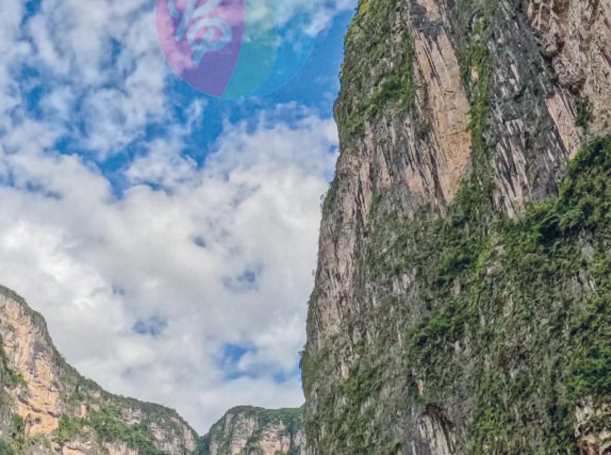 Uno de los principales atractivos del Cañón del Sumidero son los recorridos en lancha por el río Grijalva, que parten principalmente desde el embarcadero de Chiapa de Corzo. Estos paseos tienen una duración aproximada de dos a tres horas y permiten admirar de cerca las monumentales paredes del cañón, así como formaciones natura- les emblemáticas como el Árbol de Navidad, una cascada cubierta de musgo y minerales que desciende desde unos 250 metros de altura,
