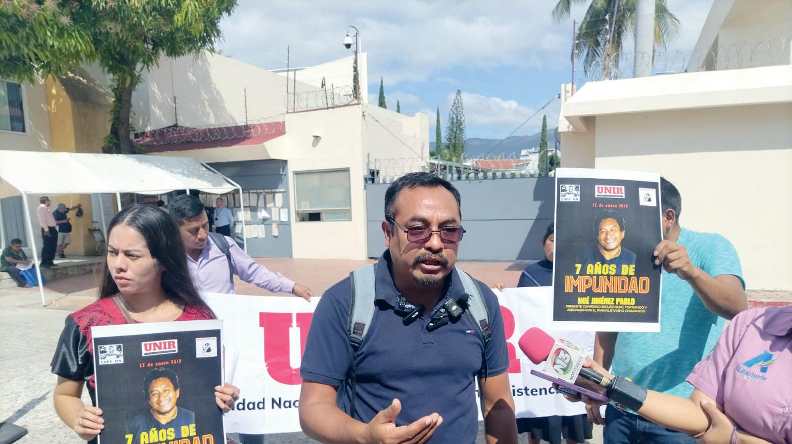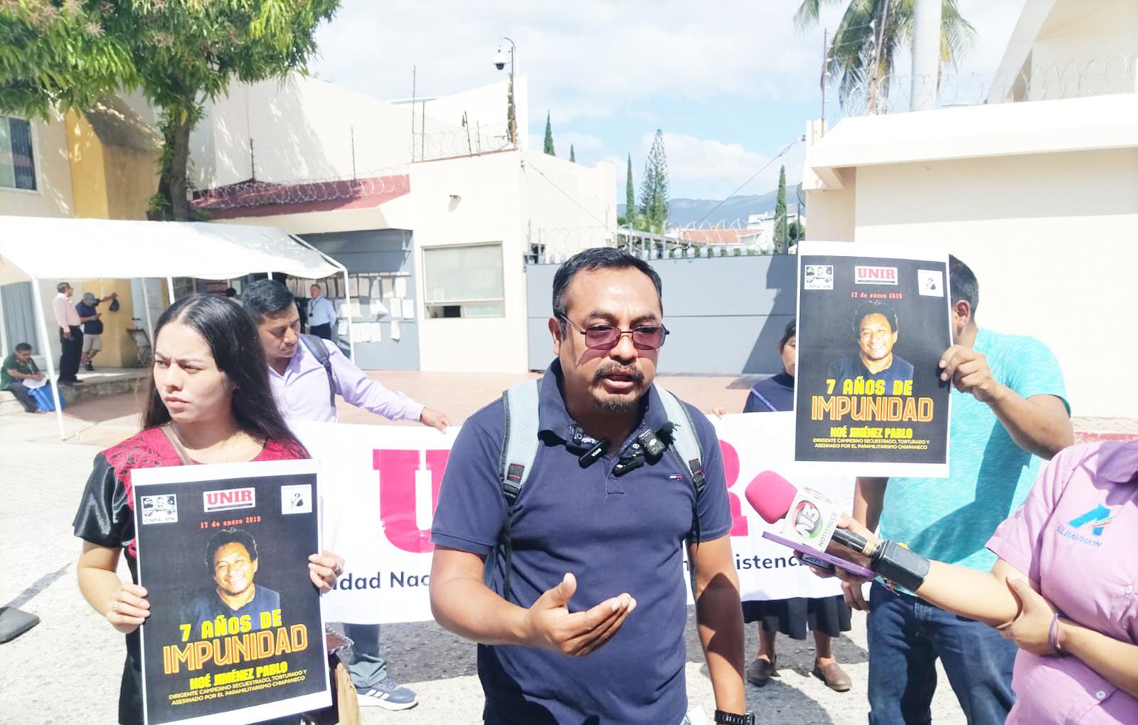 Tuxtla.- Pese a que han pasado sie7e años del asesinato de Noé Jiménez Pablo y de José Santiago Gómez Álvarez, integrantes de la Unión Nacional Independiente en Resistencia (UNIR) llamó al Estado a hacer justicia y sentenciar a quienes ejecutaron y planearon ese hecho. José Truinidad López Calvo, líder del Movimiento Campesino Regional Independiente-Coordinadora Nacional Plan de Ayala-Movimiento Nacional (MocriCNPA-MN), recordó que ambos fueron levantados, torturados y luego asesinados por encabezar una lucha contra el gobierno municipal de ese entonces, pues carecían de obras y otras cuestiones que mantenían en el rezago a esa localidad.