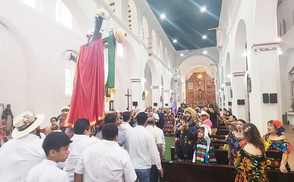 Ahí le danzan de manera masiva, el zapateado, el chinchín y las vivas resuenan con fuerza y fervor, acto seguido, parachicos y chiapanecas reciben la comida de fiesta: la pepita con tasajo, tiras de carne de res que van bañadas en un molito de pepita de calabaza, que también se ofrece al resto de los asistentes, y se sirve solo en los días más importantes de la celebración.