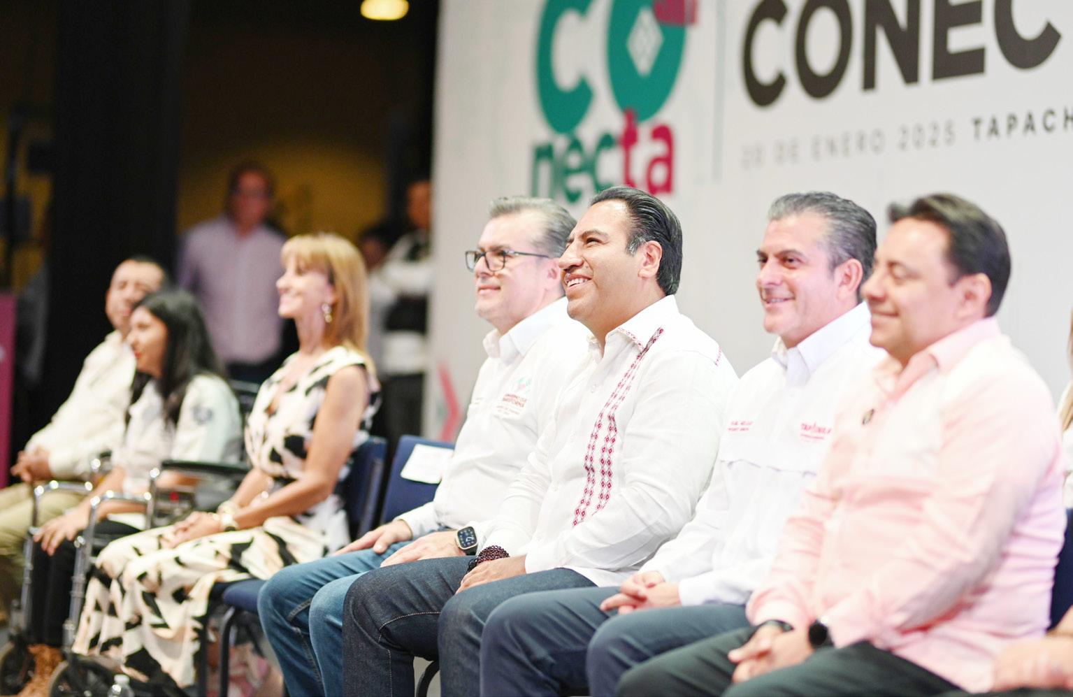 Tuxtla.- El magistrado presidente del Poder Judicial del Estado, Juan Carlos Moreno Guillén, acudió junto al gobernador del estado, Eduardo Ramírez Aguilar y el secretario del Humanismo, Francisco Chacón al arranque del programa Conecta Chiapas, evento realizado en las