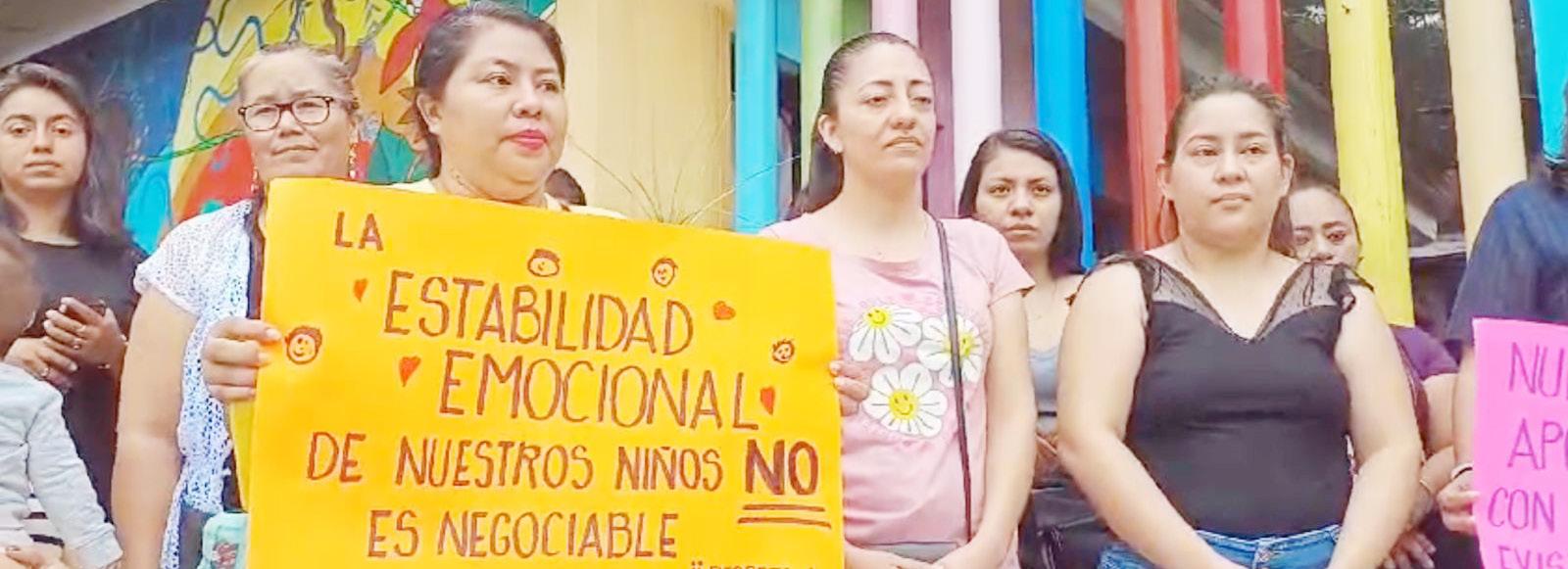 De acuerdo con Martha Beatriz Espinosa Aguilar, vocera de los padres de familia, esta inconformidad surgió desde que les notificaron que se piensa renovar al personal de ese jardín de niños. “Nosotros estamos en desacuerdo total, porque estamos muy contentos con el trabajo que se ha llevado hasta ahora de todo el personal y por otro lado se nos hace injusto que por intereses políticos o económicos la verdad no sabemos cuáles son sus intereses se haga el cambio de una manera tan arbitraria” sostuvo.