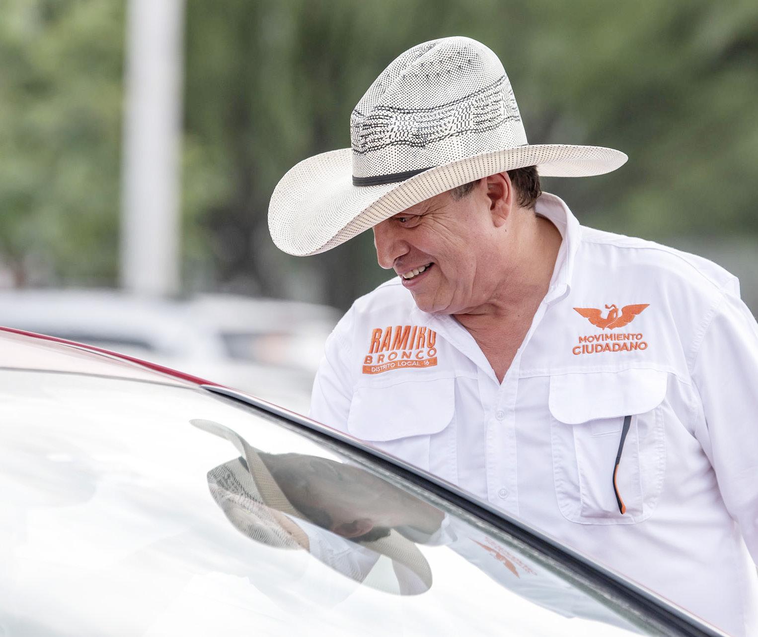 “Todo el mundo sabe que hicimos una historia con Bronco muy limpia, muy brillante, muy bonita y la quiero seguir conservando ahora en la política, por eso le digo a la gente que yo voy a venir a apoyarlos”, señaló. Ramiro llega a sus eventos de campaña vestido con su tradicional sombrero, saluda a los automovilistas que pasan por las calles y se toma la fotografía del recuerdo con los fanáticos que lo reconocen. El exacordeonista sostuvo que conoce las necesidades de la gente, así como un transporte más eficiente.