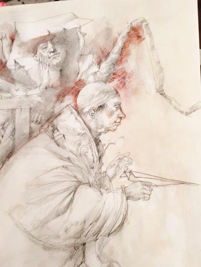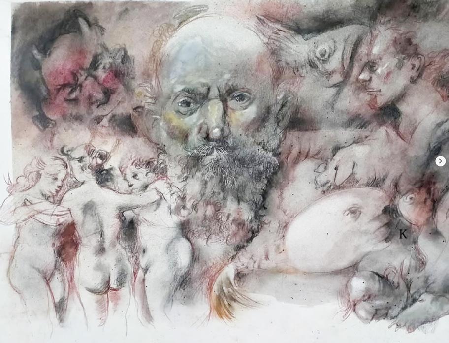 El día de hoy finalmente concretamos un episodio que ya se venía gestando desde el año pasado. Todo comenzó cuando, navegando por Instagram, me topé con unos dibujos que de inmediato me remitieron a una etapa muy específica de mi formación universitaria. Eran piezas con claros tintes e influencias de los grabados de Goya y Gustave Doré, algo poco común dentro del panorama del arte actual en Chiapas. A partir de ese encuentro virtual surgió la conversación y, más adelante, la oportunidad de conocer a Kate Minyù, una artista muy joven, con un talento notable, que ha decidido permanecer en el anonimato.