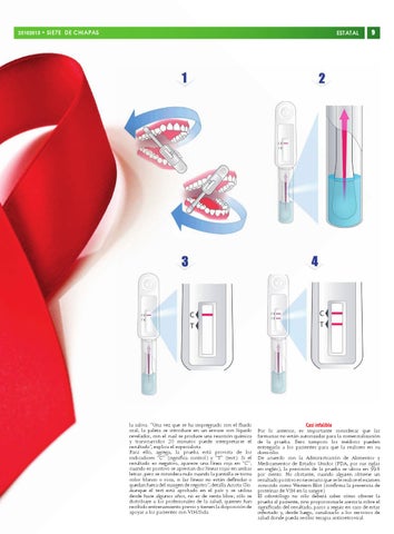 Casi infalible Por lo anterior, es importante considerar que las farmacias no están autorizadas para la comercialización de la prueba. Pero tampoco los médicos pueden entregarla a los pacientes para que la realicen en su domicilio. De acuerdo con la Administración de Alimentos y Medicamentos de Estados Unidos (FDA, por sus siglas en inglés), la precisión de la prueba se ubica en 99.6 por ciento. No obstante, cuando alguien obtiene un resultado positivo es necesario que se le realice el examen conocido como Western Blot (confirma la presencia de proteínas de VIH en la sangre). El odontólogo no sólo deberá saber cómo ofrecer la prueba al paciente, sino proporcionarle asesoría sobre el significado del resultado, pasos a seguir en caso de estar infectado y, desde luego, canalizarlo a los servicios de salud donde pueda recibir terapia antirretroviral.