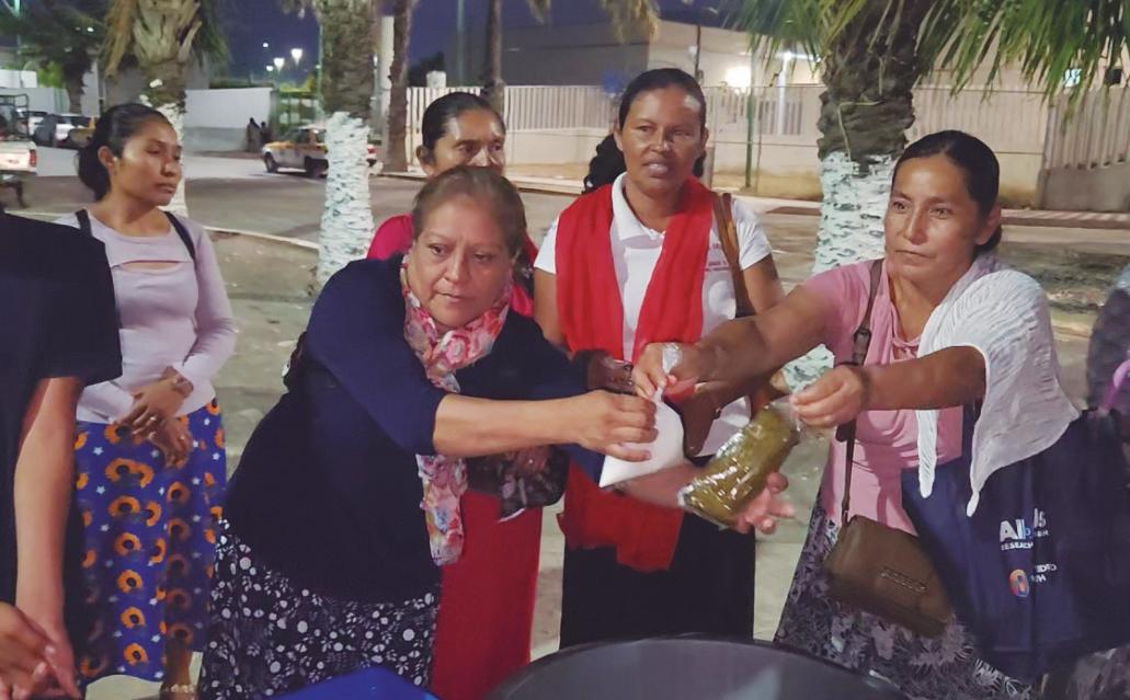 Incluso hay quienes improvisan hamacas, casas de campaña, catres, lo que sea con tal de tener donde pasar la noche, aunque no sea en las mejores condiciones, Claudia dice que “aquí dormimos afuera, aquí estamos con el polvo, que a veces vienen los mosquitos, nos pica el zancudo, y unas cuantas ratitas que hay aquí que nos acompañan de noche pero tenemos que aguantar por nuestro familiar”. Si bien hay una galera frente al hospital, algunas sillas mecedoras en renta y otros espacios para pernoctar, no todos tienen recursos para cubrir el costo de mantenimiento, los albergues ni se diga, dicen que están infestados de chinches y garrapatas, prefieren usar los baños que están ahí, construidos en plena vía pública, a cambio de un pago que a veces pueden hacer, a veces no. Para eso está la gente de buen corazón, quienes al menos una vez a la semana llegan, de distintos grupos, para dar lo que pueden para alimentar su mente y su estómago, Prisciliana pertenece a un grupo de la iglesia y les llevaron tamales y aguas frescas, en vez de café, debido al calor que no da tregua.