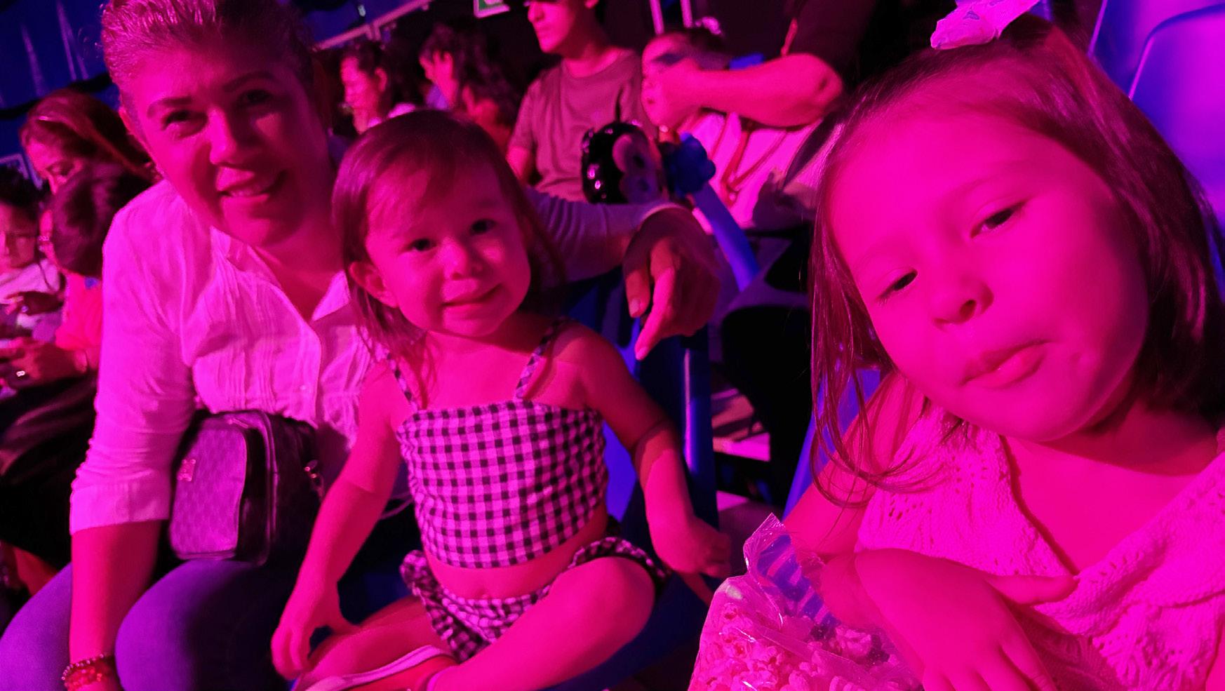 A donde sí las llevé a las dos fue al circo de dinosaurios que estuvo en la ciudad, también fue una experiencia nueva para ambas, se quedaron boquiabiertas con los acróbatas y las luces, aunque tampoco nos quedamos a toda la función porque había pausas prolongadas en las que algunos niños pasaban a tocar a los dinosaurios y quisieron salirse, pero igual se la pasaron bomba brincando