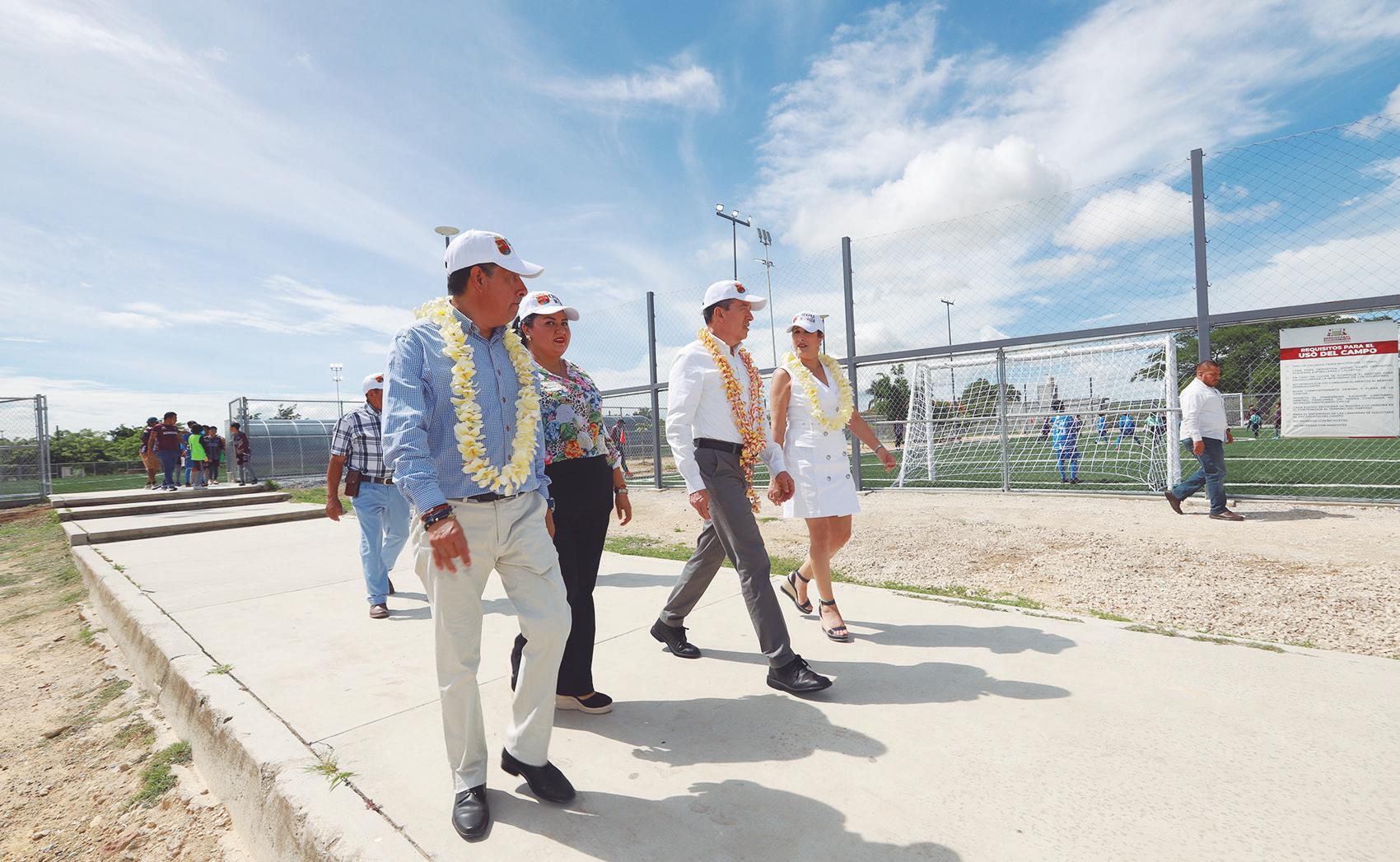 “La tercera etapa tiene una inversión de más de 20 millones de pesos, eso y más vale la pena invertir porque el deporte es salud y prevención. Estoy seguro que de esta Unidad Deportiva saldrán grandes deportistas que pondrán en alto a su tierra. Los recursos son para el bienestar del pueblo, pero por favor seamos responsables, eduquemos a nuestras niñas y niños a cuidar sus espacios públicos”, señaló. Al mencionar que su gobierno ha invertido 507 millones de pesos en diferentes rubros para mejorar la vida de quienes habitan en este municipio, el mandatario subrayó que regresará a inaugurar obras pendientes como carreteras y caminos que se ejecutan a fin de que las familias del campo puedan trasladar más fácilmente sus productos, y que la gente transite de forma segura.