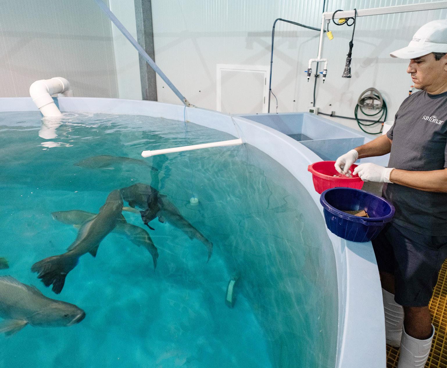 Los ejemplares reproductores de la totoaba son el primer eslabón de la cadena, pues, sin ellos, “no hay huevos, ni pescado, ni ingresos”, en palabras de Konietzko durante una visita guiada para medios. “Tienen unas dietas específicas. En este caso, la proteína les viene de la harina y el aceite de pescado”, explica, lo que se complementa con “otros ingredientes específicos” que encontrarían en su hábitat natural.