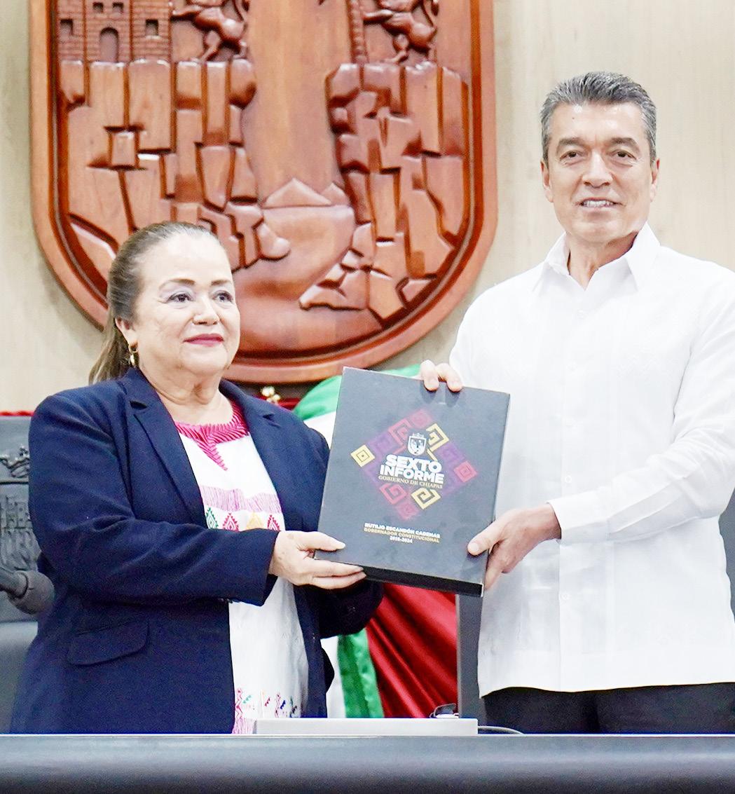 “Juntos sembramos buenas semillas y hoy cosechamos grandes frutos, como el bienestar y el humanismo mexicano. Estoy seguro que con la estafeta en manos de la presidenta electa, Claudia Sheinbaum, y con Eduardo Ramírez, gobernador electo, la Cuarta Transformación seguirá impulsando el porvenir de Chiapas, continuaremos brillando y avanzando hacia un horizonte de prosperidad por Chiapas de Corazón. ¡Viva el estado libre y soberano de Chiapas!”, enfatizó. De esta forma, cumpliendo a lo establecido por los artículos 46 y 59, fracción XVIII de la Constitución Política de Chiapas, entregó su Sexto Informe de Gobierno a la presidenta de la Mesa Directiva del Congreso del Estado, Sonia Catalina Álvarez, y presentó ante la LXVIII Legislatura y para conocimiento del pueblo chiapaneco, los resultados alcanzados a seis años de esta administración, para atender el Plan Estatal de Desarrollo 2019-2024.