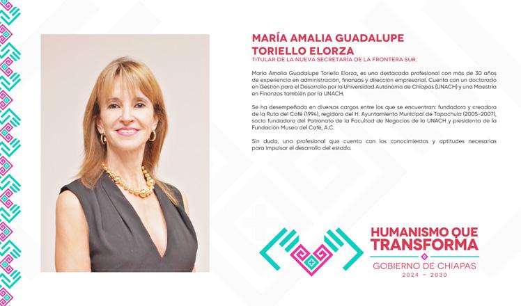 • María Amalia Guadalupe Toriello Elorza, titular de la nueva Secretaría de la Frontera Sur.