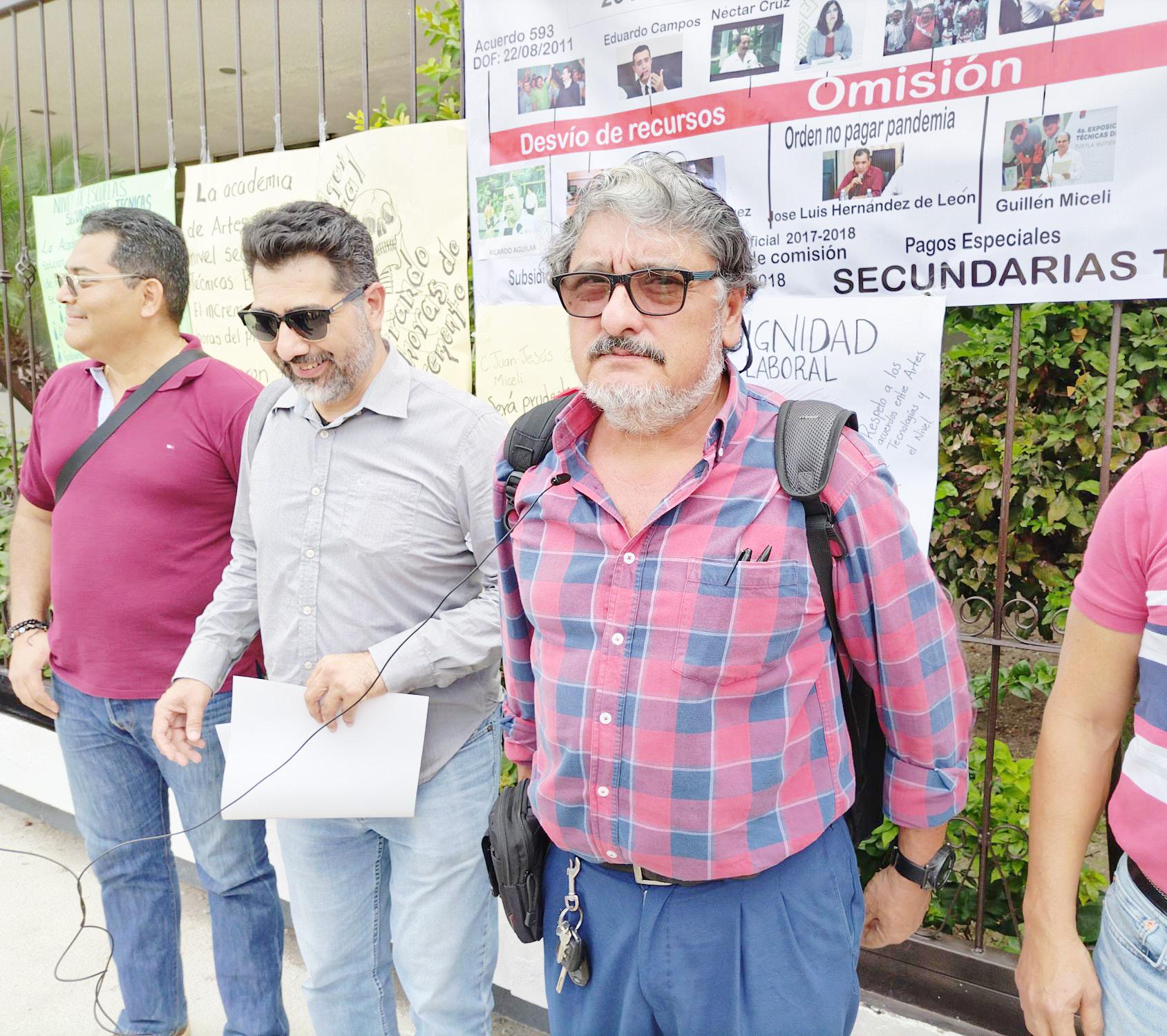 Tuxtla.- Un grupo de docentes de secundarias técnicas del estado se manifestó en el centro de la ciudad para exigir el cumplimiento de una serie de demandas, la principal el pago de1,500 millones de pesos a cerca de 6 mil compañeros y compañeras de ese nivel educativo.