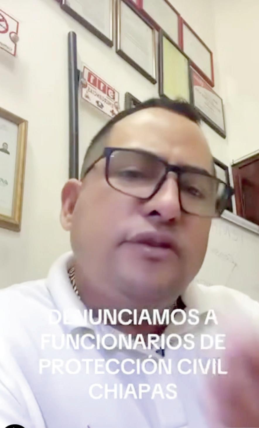 Tuxtla.- Luis Cruz, ingeniero de profesión, denunció de forma pública a funcionarios de Protección Civil (PC) de Chiapas ante una serie de presuntas irregularidades que ahí se viven y que han afectado a empresas locales en sus trámites. “Es desagradable estar realizando denuncias públicas, pero es importante que seamos vigilantes del cumplimiento de la ley, y que como ciudadanos también lo hagamos”, mencionó el también maestro en protección civil. Comentó que la situación comienza en la Dirección de Identificación de Análisis de Riesgos, donde no dejan trabajar ni hacen algo para que se haga una buena labor, “y no dejan de ser delincuentes, pues un delincuente es el que de