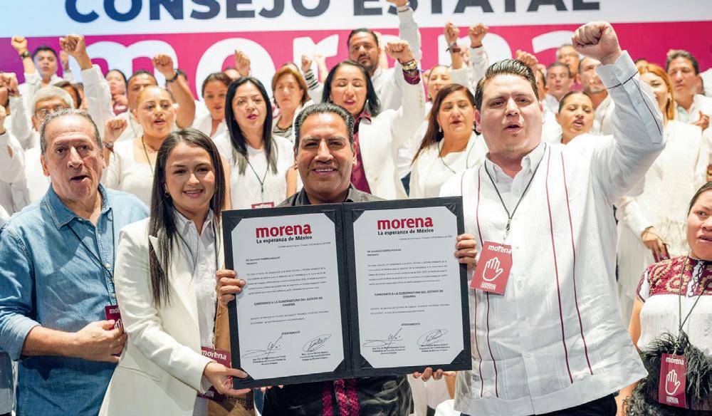 ne un significado histórico. Por primera vez, este Consejo vota una candidatura a la gubernatura de Chiapas, la del Dr. Eduardo Ramírez, señalo Flor Esponda. Bajo el liderazgo de Eduardo Ramírez como candidato a la gubernatura de Chiapas y con la Dra. Claudia Sheinbaum como aspirante a la Presidencia de la República, se consolidará la continuidad del proyecto de nación iniciado por el actual Presidente Andrés Manuel López Obrador.