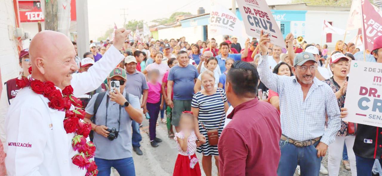 con los pobladores de Emiliano Zapata, el doctor Pepe Cruz declaró que el pueblo está en pie de lucha para defender la transformación y que la continuidad tiene rostro de una mujer humana como la Dra.