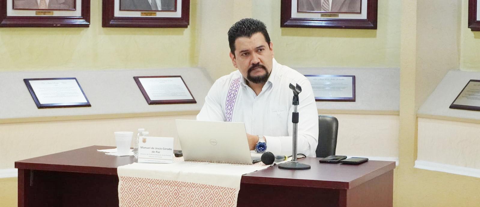 Continuando con la modalidad híbrida, a través de Facebook Live y presencial en la Sala de Presidentes del Palacio de Justicia en Tuxtla Gutiérrez, el también director general del Centro