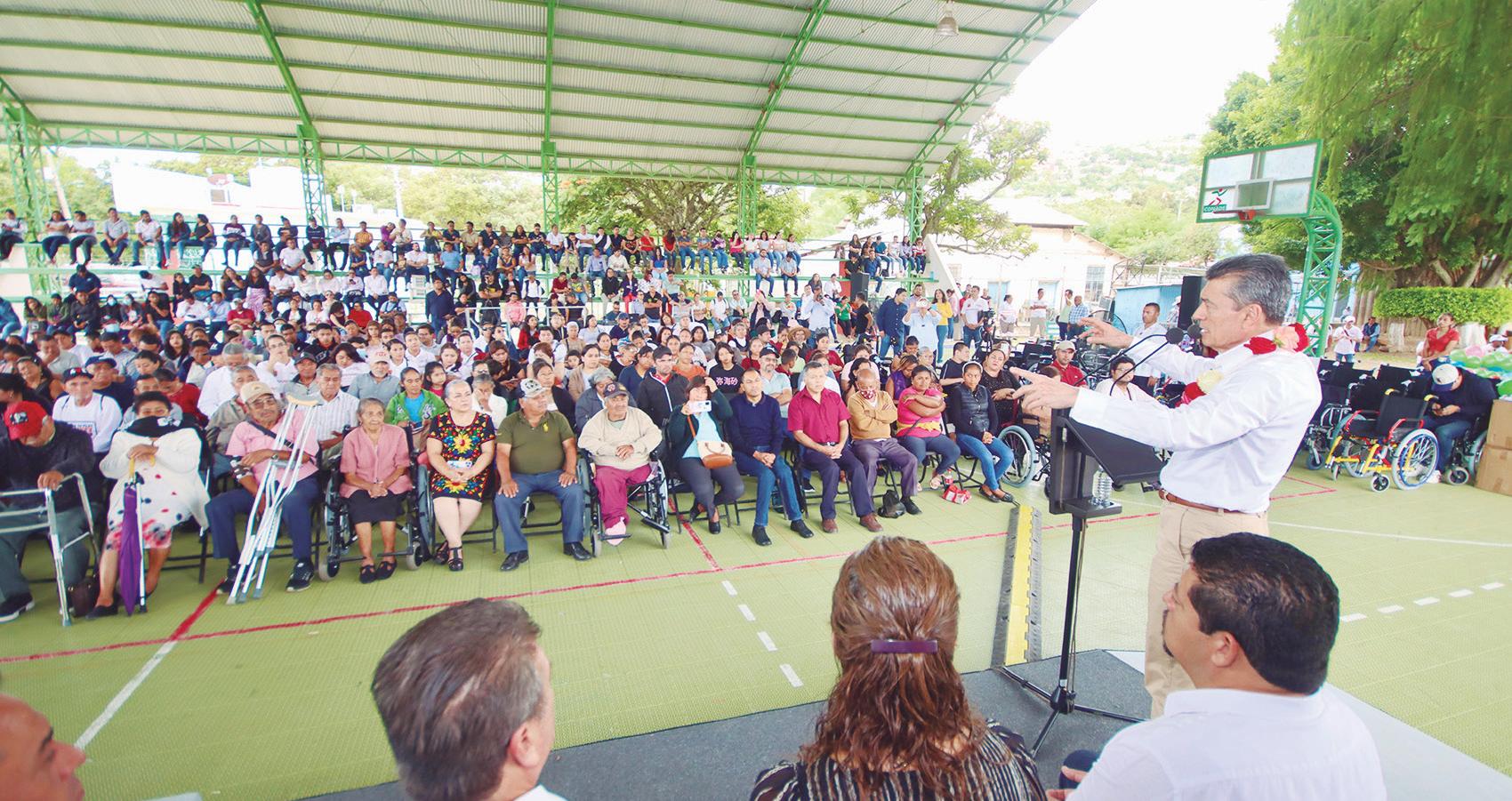 Comitán.-El gobernador Rutilio Escandón Cadenas entregó medicamentos especializados y apoyos del Proyecto Ayudas Técnicas para Personas con Discapacidad 2024, a habitantes de municipios de la Región Meseta Comiteca Tojolabal, donde destacó que el deseo del gobierno de la Cuarta Transformación es construir una sociedad más justa, igualitaria e incluyente, donde todas y todos tengan las mismas oportunidades de vivir bien y alcanzar sus legítimas aspiraciones. Subrayó que en Chiapas se trabaja con el ejemplo del humanismo mexicano que ha impulsado y consolidado el presidente de la República, Andrés Manuel López Obrador, por ello no se escatiman esfuerzos ni recursos públicos en materia de salud y en la atención de las necesidades más sensibles de la población, especialmente de los sectores en condiciones de mayor vulnerabilidad.