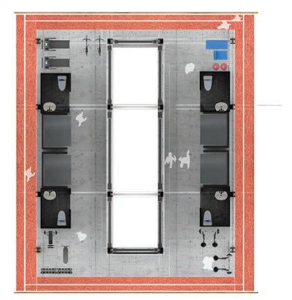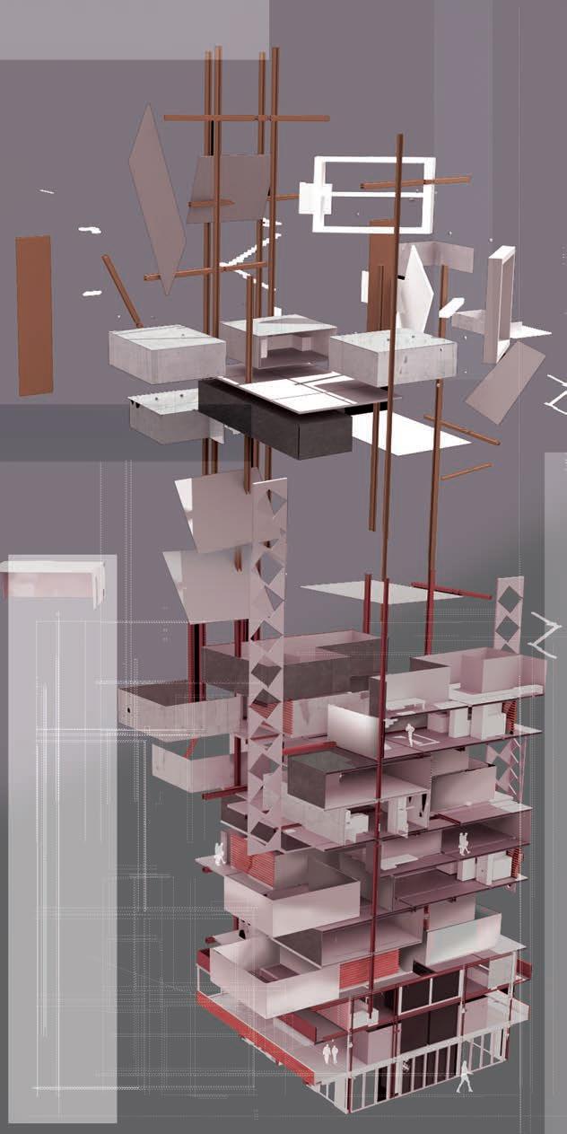 Giving the owner a chance to make additional income for rent or maximizing the owner's square footage for special occasions. Cybernet gives the luxury of customization and affordability in one unit. Cybernet integrated a mixture of innovative systems that allows for this housing project to not only be self-sustainable, but also allows it to be easily managed. Using manufacturing techniques such as turning mechanisms to dual-use I-beams, Cybernet’s structural properties allow for a kinetic feature that allows all housing units to be shifted and transported vertically. Each floor is capped with a concrete slab that has a mechanical track that allows for each unit to safely connect and shift with ease. From retractable-structural walls to smart sensor end handrails, Cybernet is a fresh new take on affordable housing.