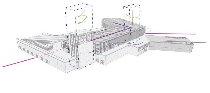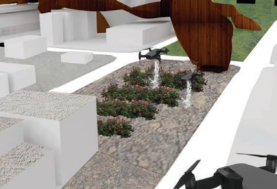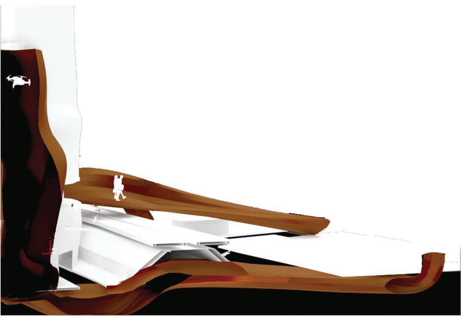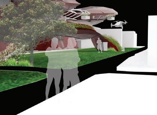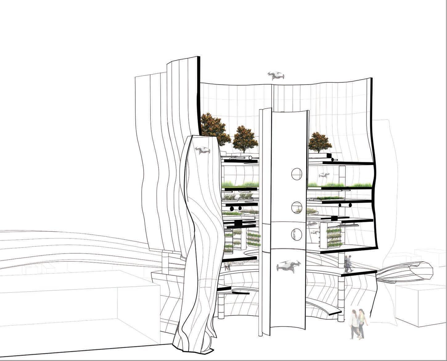 In the Agri Network, the structure itself is 90 percent utilized by drone use. However, the structure has a public element that allows for a fun open space for the public. The Mezzanine area is an open space where Patreon's can have access to neighbor rooftops, which not only expands the open space but also delivers supplies through the neighbor programs.