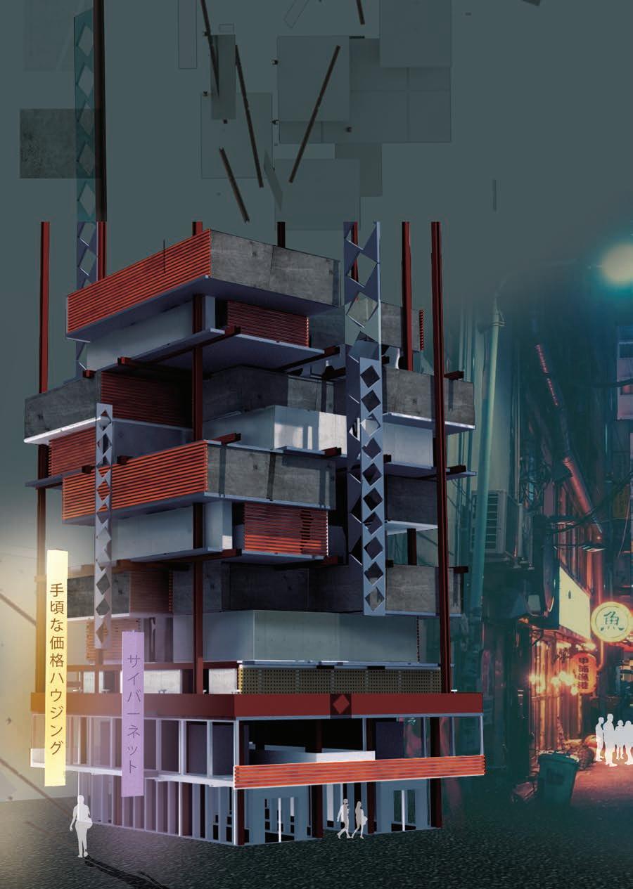 When designing this Urban Housing project, technology as a solution to living affordably is a new innovative way for mid "adults" (age 24-36) to purchase an affordable home and afford it. By using prefabricated designs and a technological software (Cybernet), Applicants can be approved instantly. Cybernet housing contains 8 to 16 housing units consisting of a one or two-bedroom apartment space. This urban housing is tech-savvy. Allowing the space to be customized by the owner. By utilizing a Housing Rent App., the owner can rent out the living and kitchen space to a different unit for a fixed time and price.