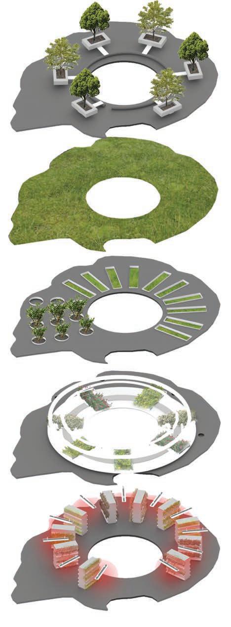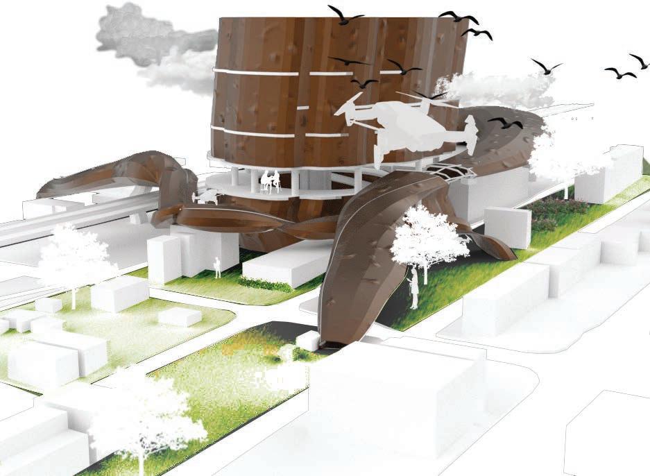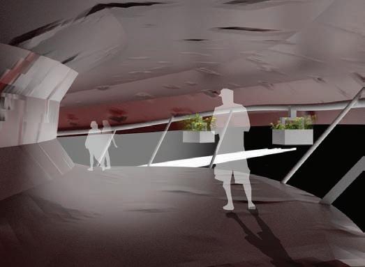 Looking through the lens of progression and innovation, El Refugio Highline takes an innovative approach to sustainability in Emergency Architecture. With the topic of flooding being the main emergency, we must approach the question of permanency of a space and its functionality that it has in the city. Taking place in Mexico City, in the Tepeyac Hills. El Refugio Highline takes an original approach to mitigating a solution to Mexico's flooding and sinking problem and proposes an adaptive approach as a solution. El Refugio Highline focuses on creating a "refuge" highline that spans 3 miles across three mixed-use communities. This Highline not only incorporates agricultural crops, new adaptive housing, and a resource oculus that markets emergency supplies and food but also includes open space nodes that allow for opportunities for solitude and reflection for the old way of living. El Refugio Highline incorporates innovative water technology that harvests rainwater into its above-ground chinampa-inspired retention ponds. El Refugio's Tree structure columns incorporate various sustainable designs that allow innovative ways to collect and retain rainwater. Mexico City is currently facing a water issue that not only is compromising the integrity of its infrastructure, but it is causing a distribution issue. But it also incorporates technology through its tree structure columns, which gives a new form to sustainable resources. Instead of wasting resources that attempt to prevent Mexico City from flooding and sinking, why not give in to the inevitable and adapt to living with water again like the origins of Tenochtitlan? El Refugio Highline is the next evolution of Mexico City's future.