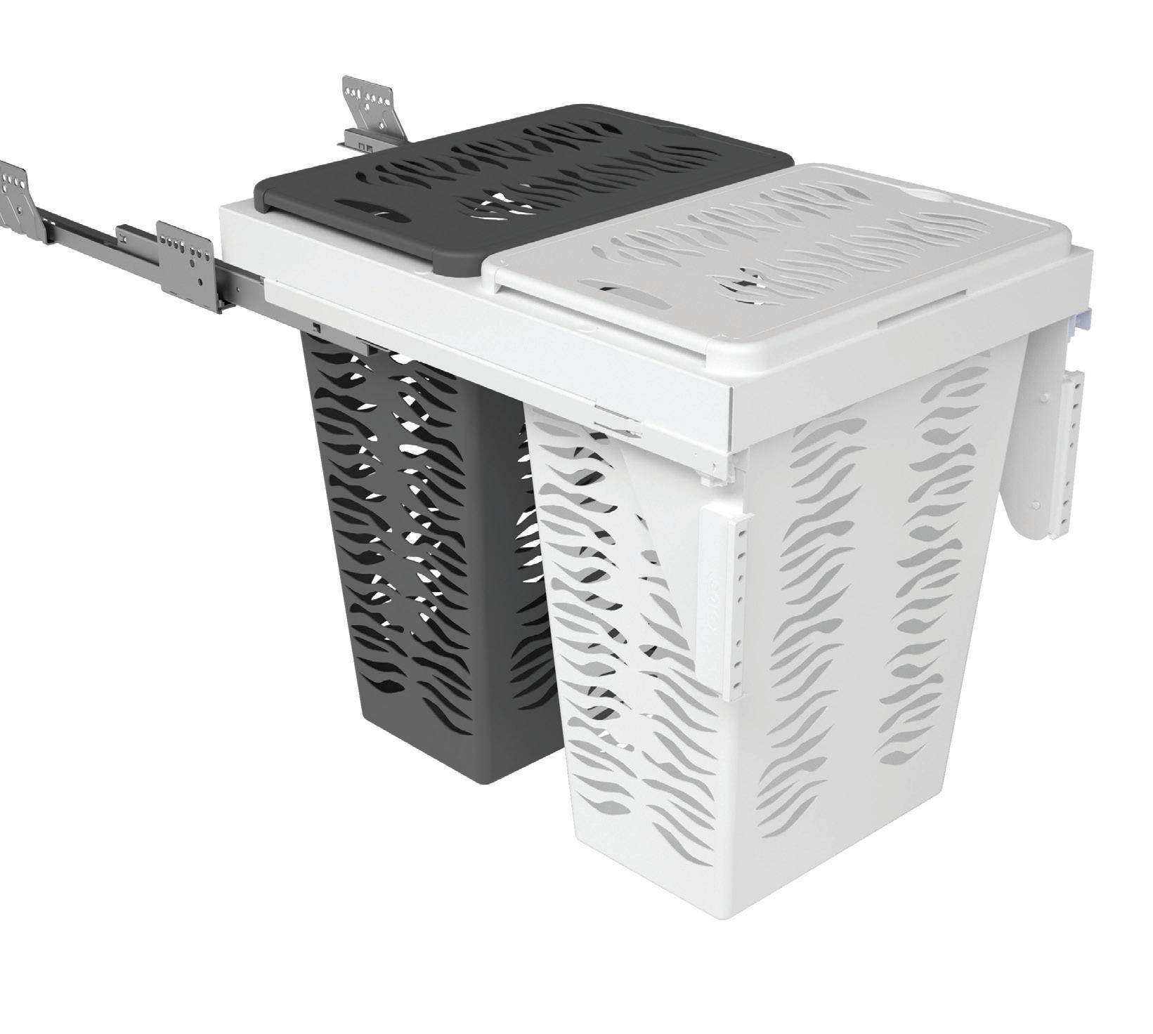 “Zebra” laundry bin, over extension slides with soft closing.