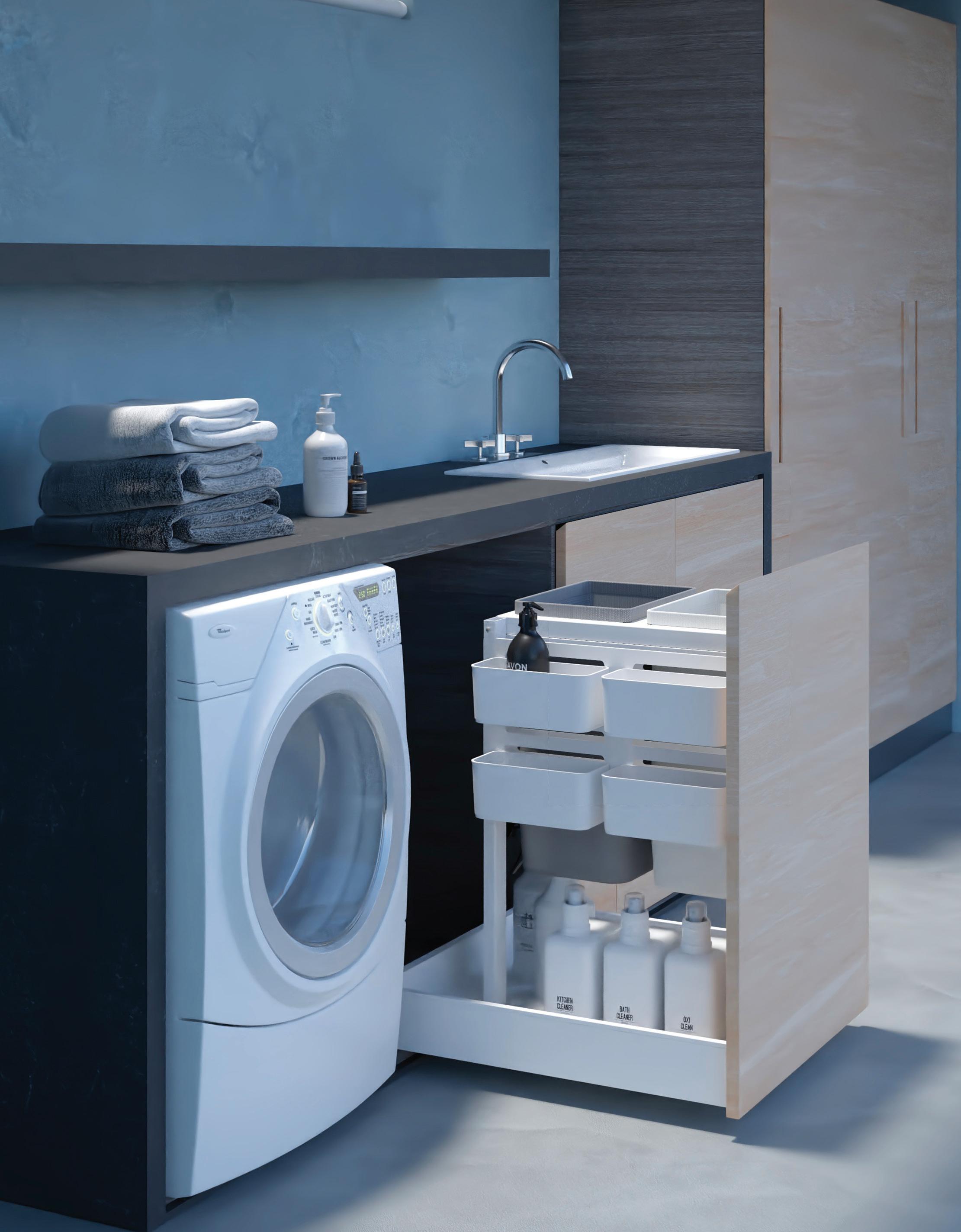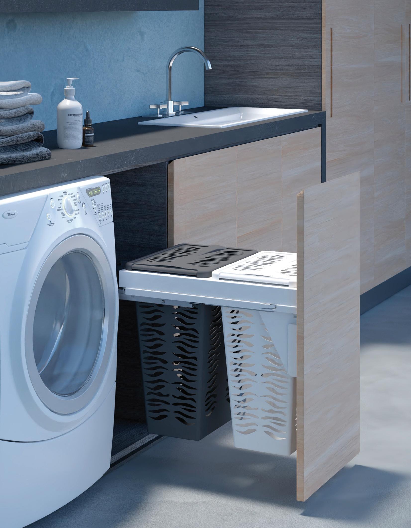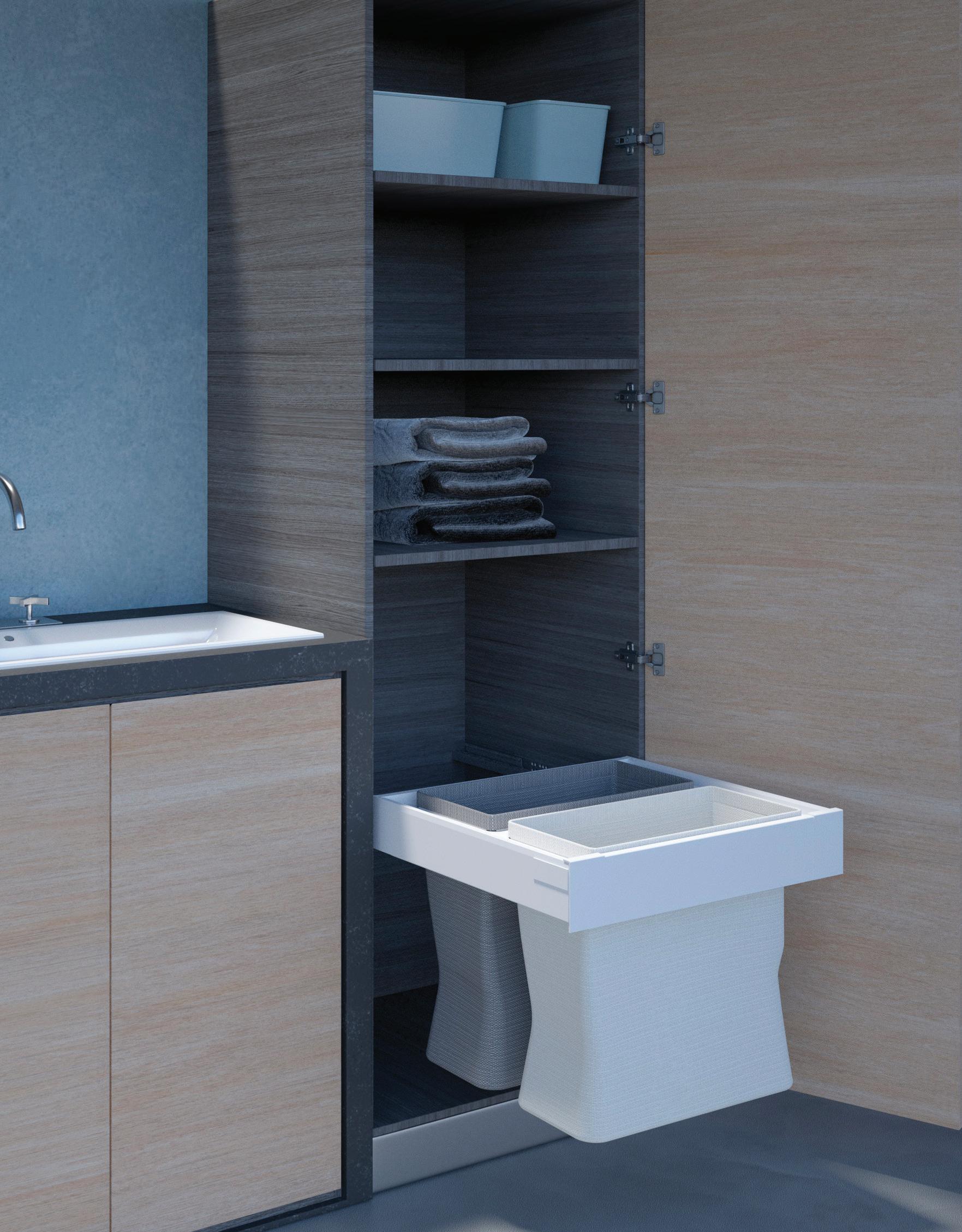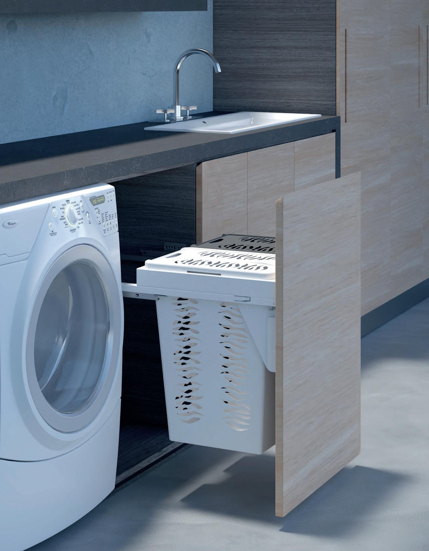• i portabiancheria con anta a ribalta, doppi e singoli, su sponda per cassetto interno o estraibili con soft closing, rendono il momento del bucato più pratico e efficiente; le loro linee semplici ed ergonomiche si integrano perfettamente ai mobili, mentre la struttura robusta garantisce un’ottima durata nel tempo