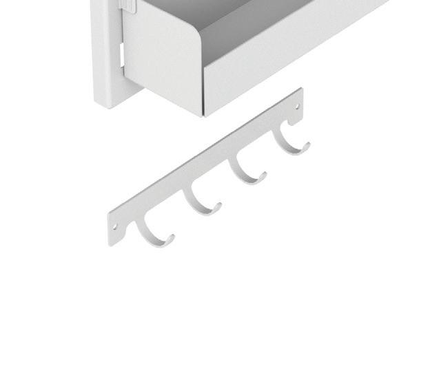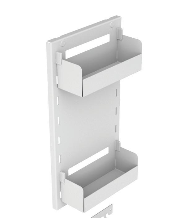 Kit ripostiglio per anta “A-Posto”, min 400mm composto da struttura a due ripiani e ganci multiuso, in lamiera verniciata.