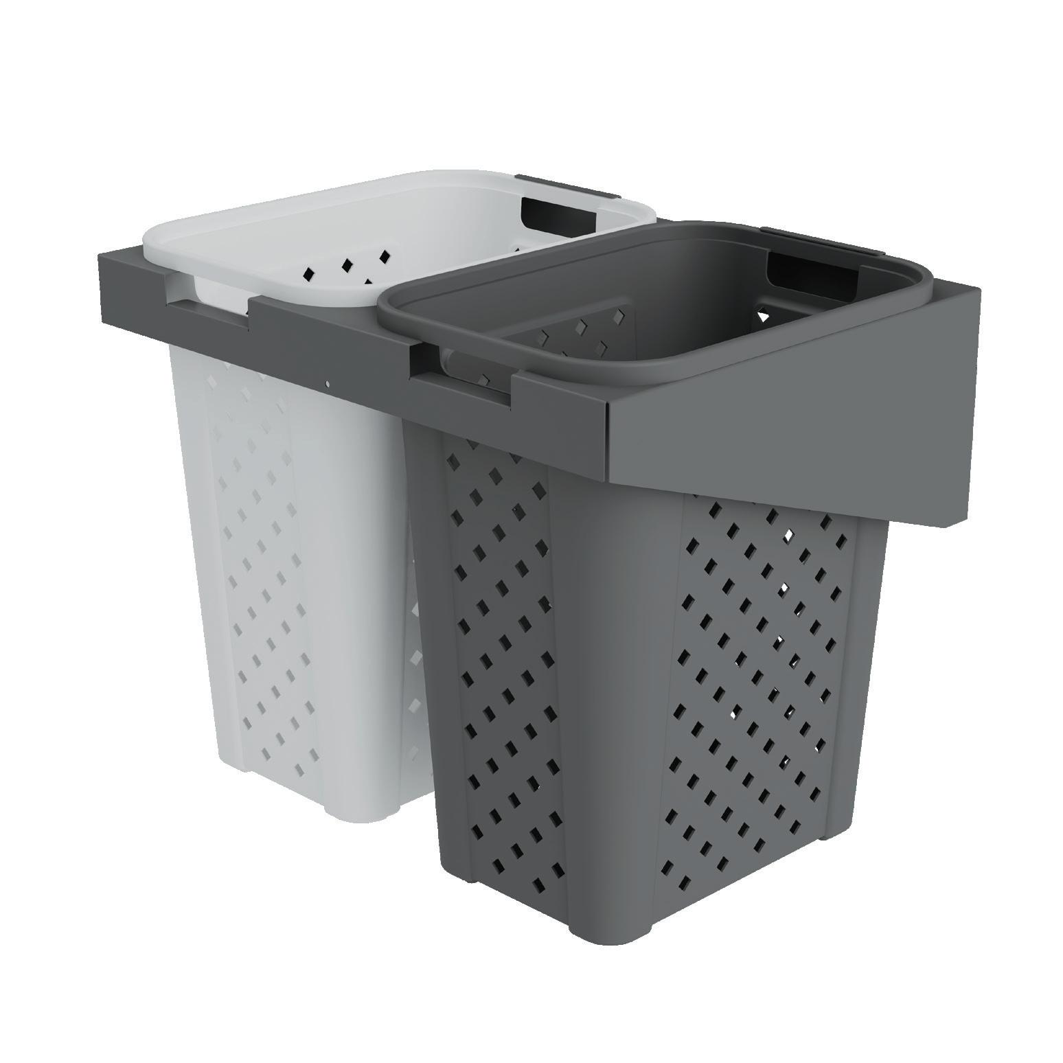 Laundry basket for tilt door with 2x30 liters buckets.