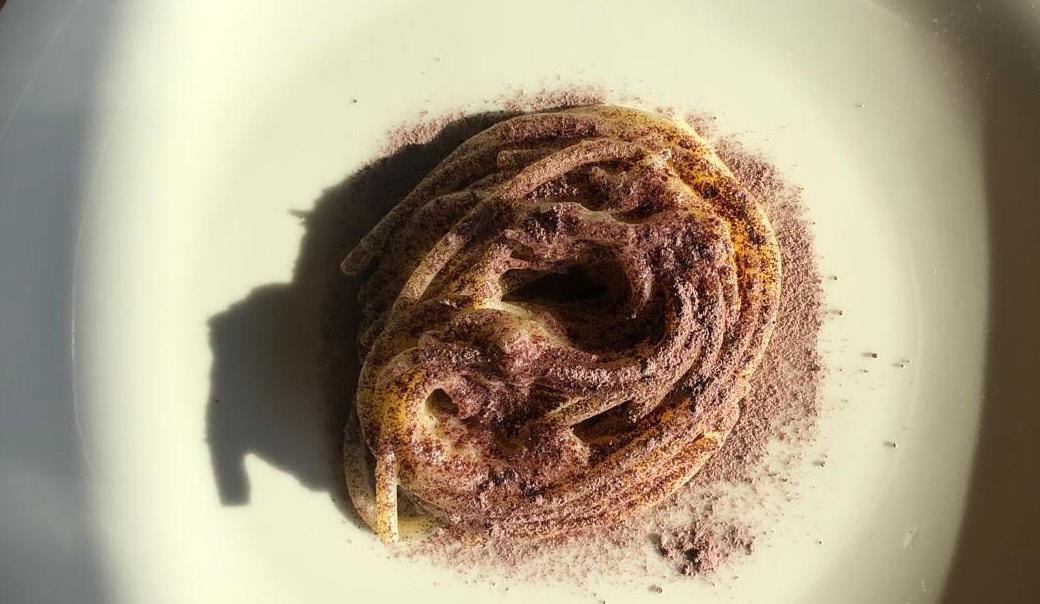 Lo sa bene Michele Valotti, tra i cuochi più illuminati del nostro tempo, che nella sua Madia in quel di Brione propone due percorsi degustazione in cui fermentazioni e acidità vivaci e cangianti hanno spesso un ruolo da protagoniste. Sono lì a raccontarci tecniche ancestrali, a parlarci della necessità di conservare e prolungare la vita di un alimento, o di valorizzare uno “scarto”, restituendoci profili sensoriali spesso inediti, dove anche la componente acida sa aggiungere elementi di golosità al piatto. La polvere di feccia di Aleatico (ripetete con me, polvere di feccia) nello spaghettone con midollo di broccolo è il cesello sensoriale acido.