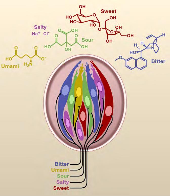 Ci è voluto un secolo per dimostrare che i recettori del gusto non rispondono esclusivamente a un unico sapore, ma solitamente a più stimoli gustativi, seppur in modo diverso. Esiste una preferenza specifica dei recettori rispetto a uno dei sapori primari, ma non vi è una selettività assoluta. Possiamo insomma percepire ciò che definiamo dolce non solo sulla parte anteriore della lingua, o il salato ai lati e via discorrendo, ma in quella stessa area percepiremo anche altri sapori, magari con intensità diverse. La discriminazione dei sapori non è tanto una faccenda geografica, ma è invece legata al tipo di recettore e all’attività di confronto con gli altri recettori gustativi.