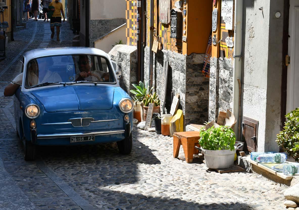 stemare le reti o a prepararsi ad uscire. Giusto Franco al parcheggio mi ha raccontato che le antiche tradizioni della pesca sono ancora molto radicate qui, come quella del pescespada che in queste acque del mar Tirreno, mosse da forti correnti e per questo ricche di plancton, trova quelle condizioni ideali che rendono la sua carne migliore, più soda e ricca di sapore, rispetto ad altre aree di pesca. Ci sono vicoli che culminano in palafitte dove d’estate vengono allestiti ristorantini direttamente sul mare. È divertente vedere i turisti che entrano ed escono come scoiattoli, tra l’affascinato e il divertito, da queste minuscole vie tra le casette colorate, scendendo qualche scalino o affrontando una discesetta fino a mare.