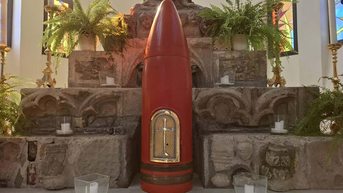 È il 7 settembre 1952 quando si organizzano slitte (carri senza ruote) trainate da buoi per portare sul sagrato della chiesa diroccata una piccola delegazione proveniente da Parigi e procedere con la deposizione della prima pietra. Ha inizio così, ufficialmente, la costruzione del Tempio, che si ispirerà alle chiese francesi, con il campanile incorporato nella facciata. Don Adamo si spende senza riserve per far conoscere il progetto e fa arrivare il messaggio ovunque perché si inviino pezzi delle rovine delle guerre nel mondo (che nel 1951/52 erano ancora tante). “Tutto questo in anni in cui il paese si stava spopolando. Un atto doppiamente coraggioso” - ci tiene a sottolineare Giancarlo, che insieme a Matteo ripercorre con noi quegli anni intensi, surreali per alcuni aspetti, ma