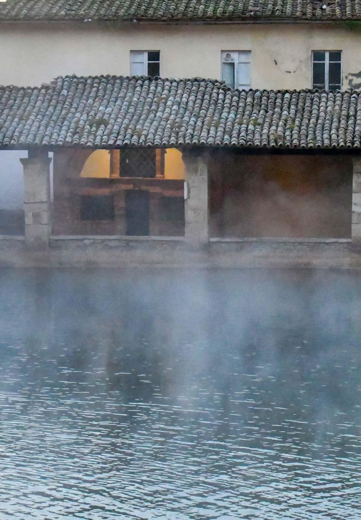 Una magia straniante e bellissima; l’ho vissuta ad ogni ora, all’alba come di notte, avvolto nel silenzio e nei fumi che si sollevano dall’acqua.