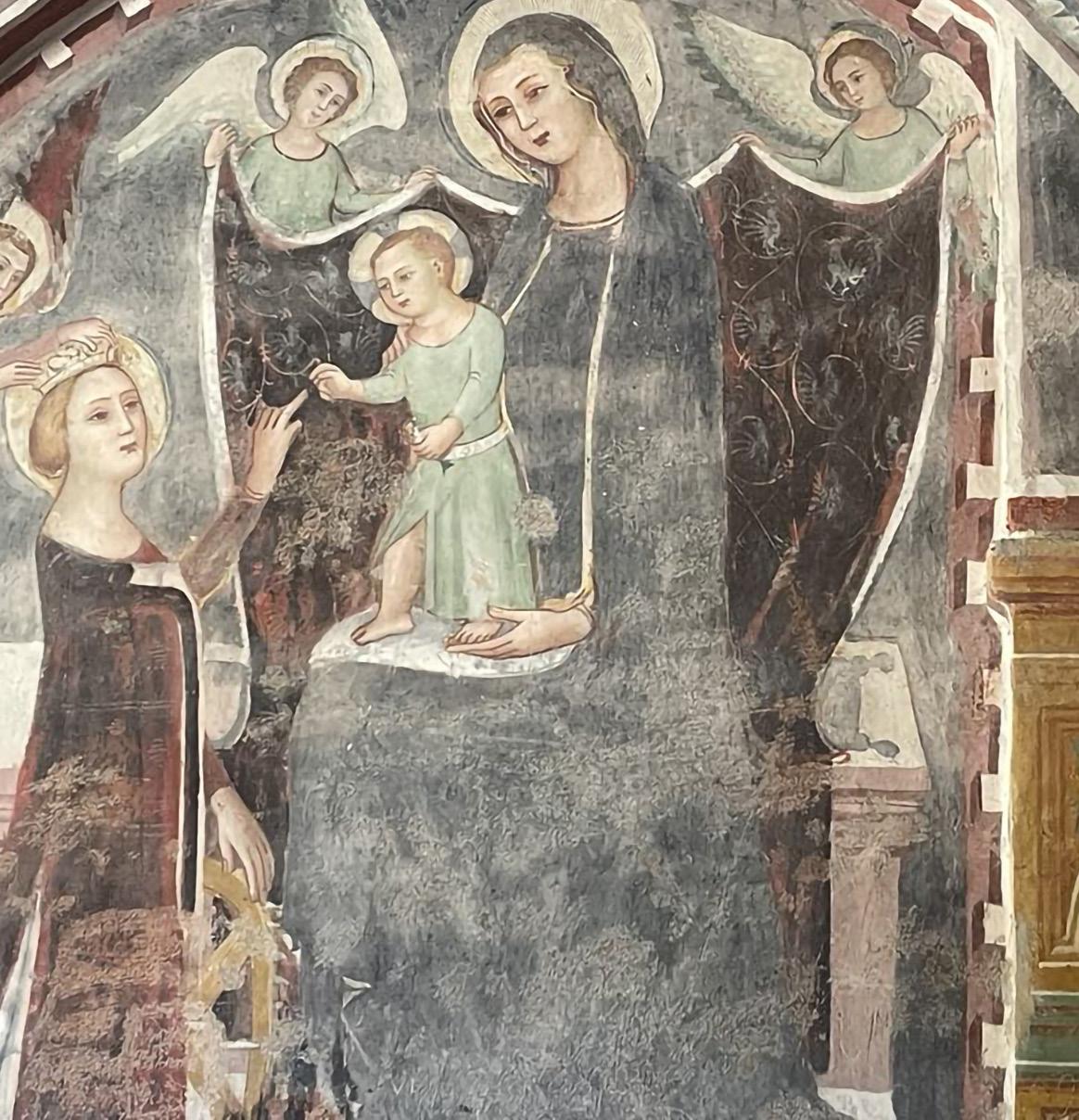 Sotto il loggiato che chiude un lato della vasca c’è una piccola cappella dedicata a Santa Caterina da Siena. È ciò che rimane della chiesa dedicata a lei, risalente al XV secolo. A pochi passi dal loggiato troviamo la chiesa dedicata a San Giovanni Battista che conserva un affresco di Cristo risorto: si tratta di un dipinto del Settecento che raffigura Santa Caterina da Siena con il borgo di Bagno Vignoni sullo sfondo. Questo affresco prima era nella cappella del Loggiato.