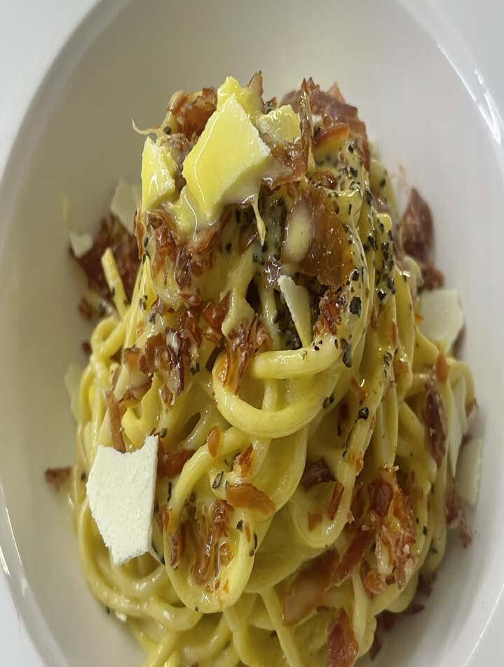 Il pomeriggio è trascorso tra cuochi che volevano solo far bella figura e tutti l’hanno fatta, sia nella preparazione della Carbonara au Koque sia nella seconda ricetta frutto della loro fantasia creativa.
