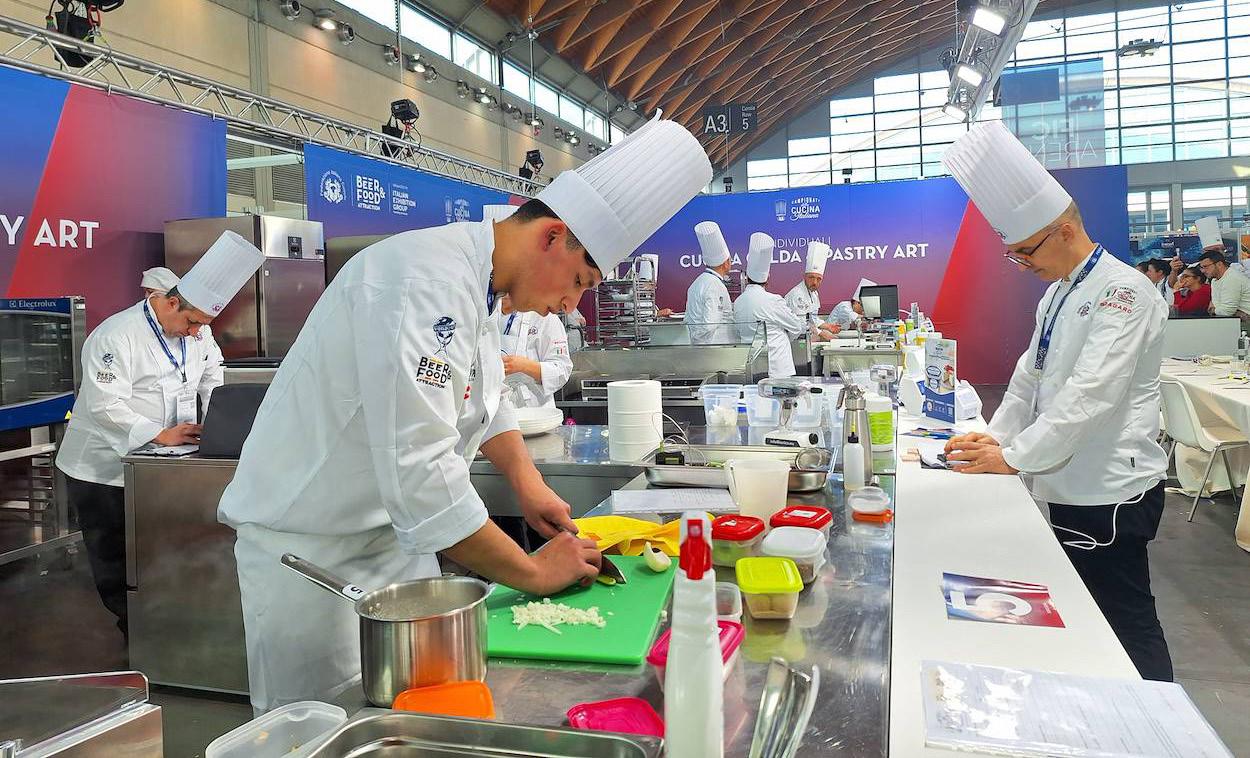 Lo chef Marco Sacco è stato il primo a tenere una lezione, complice il suo piatto più famoso, la Carbonara au Koque, che lo colloca tra gli chef più preparati sul tema della pasta.