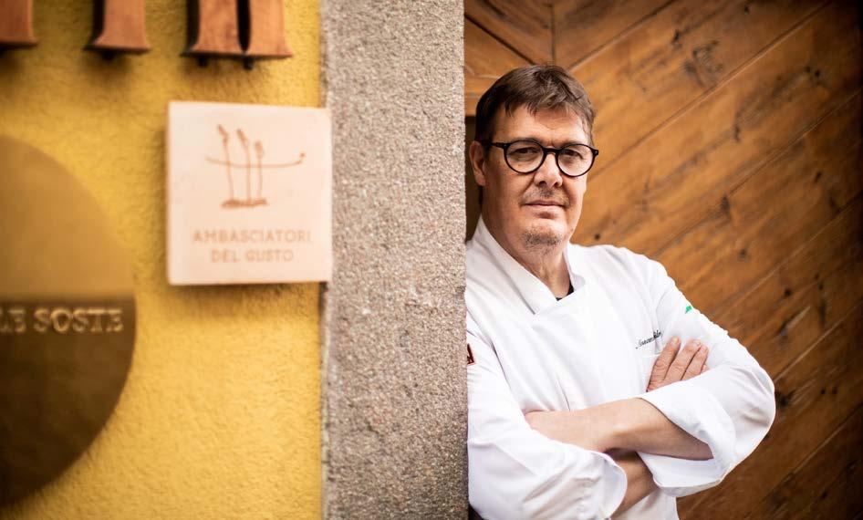 “Ho sempre pensato che un luogo che va raggiunto racchiuda in sé un valore aggiunto, perdonate il gioco di parole. – ha raccontato lo chef - E, proprio per questo, deve dare qualcosa di diverso, a cominciare dalla struttura. Se ti metti al centro della grande vetrata della sala del Piccolo Lago, con lo sguardo racchiudi tutto il bacino lacustre e la natura che lo circonda. Da questa visuale ho iniziato a pensare al mio tipo di cucina, i cui piatti si basano proprio sul colore della natura. Non voglio definirla cucina di territorio ma è una proposta che ti fa venir voglia di metterti in viaggio alla scoperta del lago e poi della terra, della Val d’Ossola. Attraverso la mia cucina arrivi fino ai piedi della cascata del Toce, entri negli alpeggi che partono da lì, cominci a scoprire i prodotti che ne contraddistinguono anche il paesaggio. Sono andato in Francia in un periodo in cui l’unica cucina che avevo visto era quello in cui lavorava mio padre con l’aiuto di un lavapiatti. Erano i primi anni Novanta quando arrivai a Mougins, dal grande chef Roger Vergé. Il primo impatto fu di forte soggezione, in cucina lavoravano quaranta persone che lui salutava, uno per uno, ogni mattina e ogni sera prima di andar via. Lì mi si è aperto un mondo assolutamente nuovo e affascinante che mi ha fatto dire che anch’io sarei diventato uno chef stellato. Ho capito due cose per me fondamentali per la futura crescita professionale: ho imparato come si sta in una cucina di brigata, con regole molto precise, e ho appreso