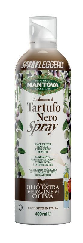 Il protagonista indiscusso degli oli in spray è sicuramente l’Olio Extra Vergine di Oliva 100% italiano. Partendo da questa eccellente materia prima, la linea si apre alle aromatizzazioni cha vanno dalle più classiche – aglio, limone, peperoncino, basilico, rosmarino, cipolla – alle più stravaganti – curcuma, zenzero - alle più fantasiose come arancia e pepe nero.