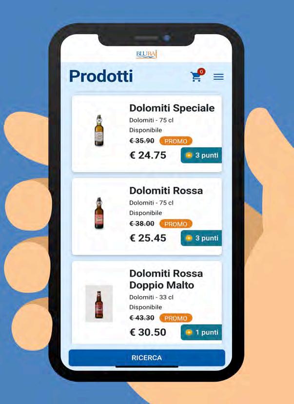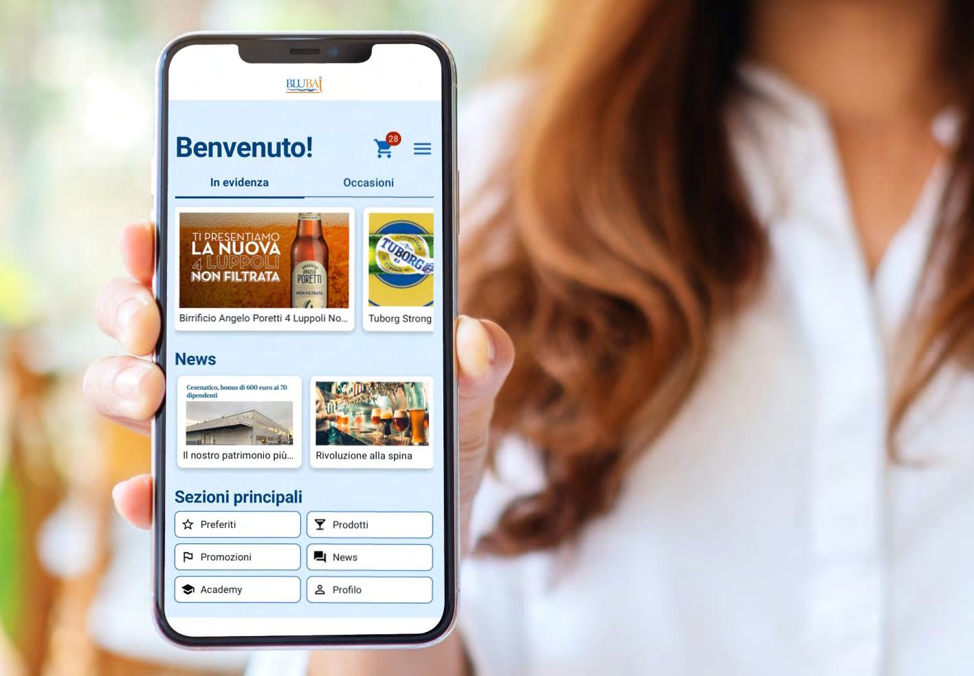 “Dopo un primo lancio abbiamo voluto dare un ulte riore aggiornamento per premiare fedeltà e buoni comportamenti dei nostri clienti. Durante l’ultima edi zione di Beer Attraction, a Rimini, abbiamo integrato l’App con un sistema a punti sui prodotti che Blubai tratta in esclusiva. La somma di quei punti, in funzione degli ordini, offre ai nostri clienti dei vantaggi accedendo a cataloghi personalizzati, vincendo ombrelloni, calici, secchielli portaghiaccio, oppure sconti sul prossimo ordine. Inoltre ogni prodotto delle migliaia di referenze che abbiamo in assortimento è accompagnato da una scheda tecnica con le informazioni utili: descrizione, il prezzo, il confezionamento e le eventuali promozioni attive. Serve a ricevere istantaneamente promozioni mensili, offerte speciali e comunicazioni