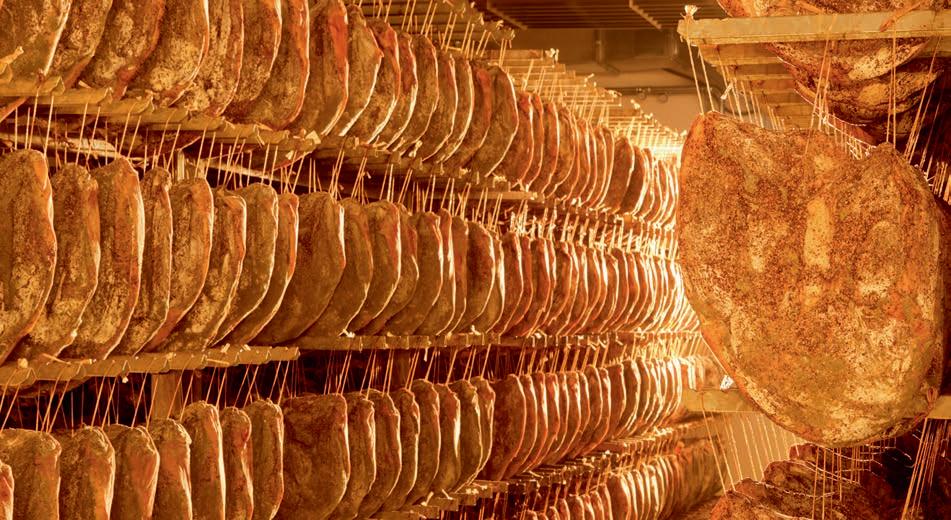 La materia prima è selezionata e sottoposta a severi controlli di qualità che ne garantiscono la tracciabilità. La stagionatura è un passaggio fondamentale e come tale soggetta a un processo ben definito e controllato nel quale il tempo, lento e costante, diventa elemento importante: ogni fase viene osservata e il calo peso che avviene durante l’asciugatura monitorato e sorvegliato fino al raggiungimento del grado ottimale.