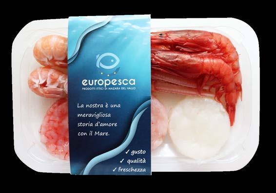 L’offerta di Europesca comprende, oltre al pesce, un ampio assortimento di crostacei, non solo Gambero Rosso del Mediterraneo, prelibatezza tipica particolarmente apprezzata nella cucina italiana, ma anche Gambero Viola, Scampi, Mazzancolle e Gambero Rosa. L’azienda prepara e produce inoltre tartare e carpacci a base di crostacei, pesci o molluschi seguendo altissimi standard di qualità durante tutte le fasi produttive.