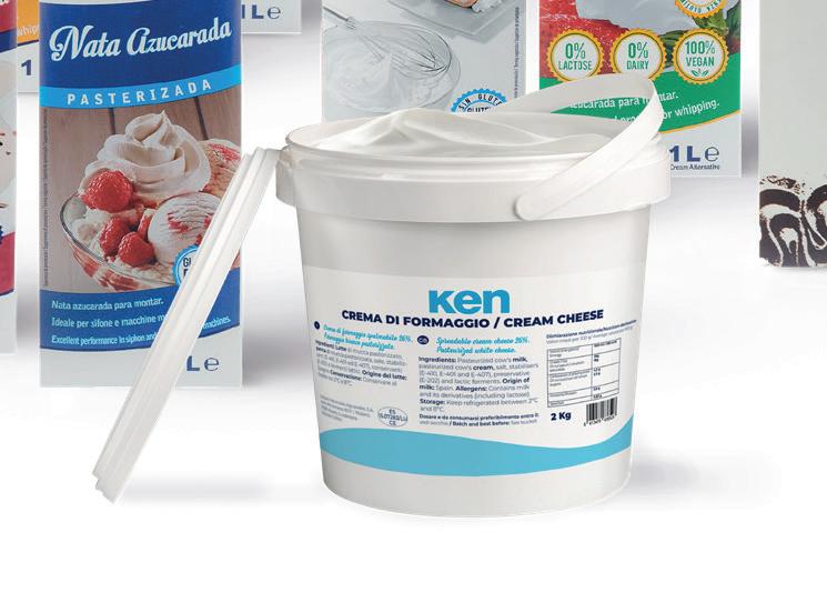 Ken Nata 38%, una panna al 38% di materia grassa senza e con carragenina la cui stabilità naturale e le performance costanti la rendono ideale per ogni tipo di preparazione, da quelle di pasticceria a quelle di cucina e di gastronomia. Ken Nata Azucarada, la zuccherata al 32,5% di grassi, dal sapore fresco e dolce. Estremamente versatili anche i Blend, da montare e per cucinare, come Ken Lactea 35%, dalla texture perfetta, stabile e lucente; Ken Lactea Sugar un altro eccellente preparato a base di panna (al 31%) e nella gamma delle 100% vegetali abbiamo Ken Presto zuccherata, ideale anche come prodotto da taglio e per decorare, adattabile a ogni esigenza con grande facilità di impiego e chiude l’offerta la 100% Vegana e senza lattosio, Ken Gold&Fresh, un prodotto già zuccherato per la pasticceria assolutamente al passo con i tempi.