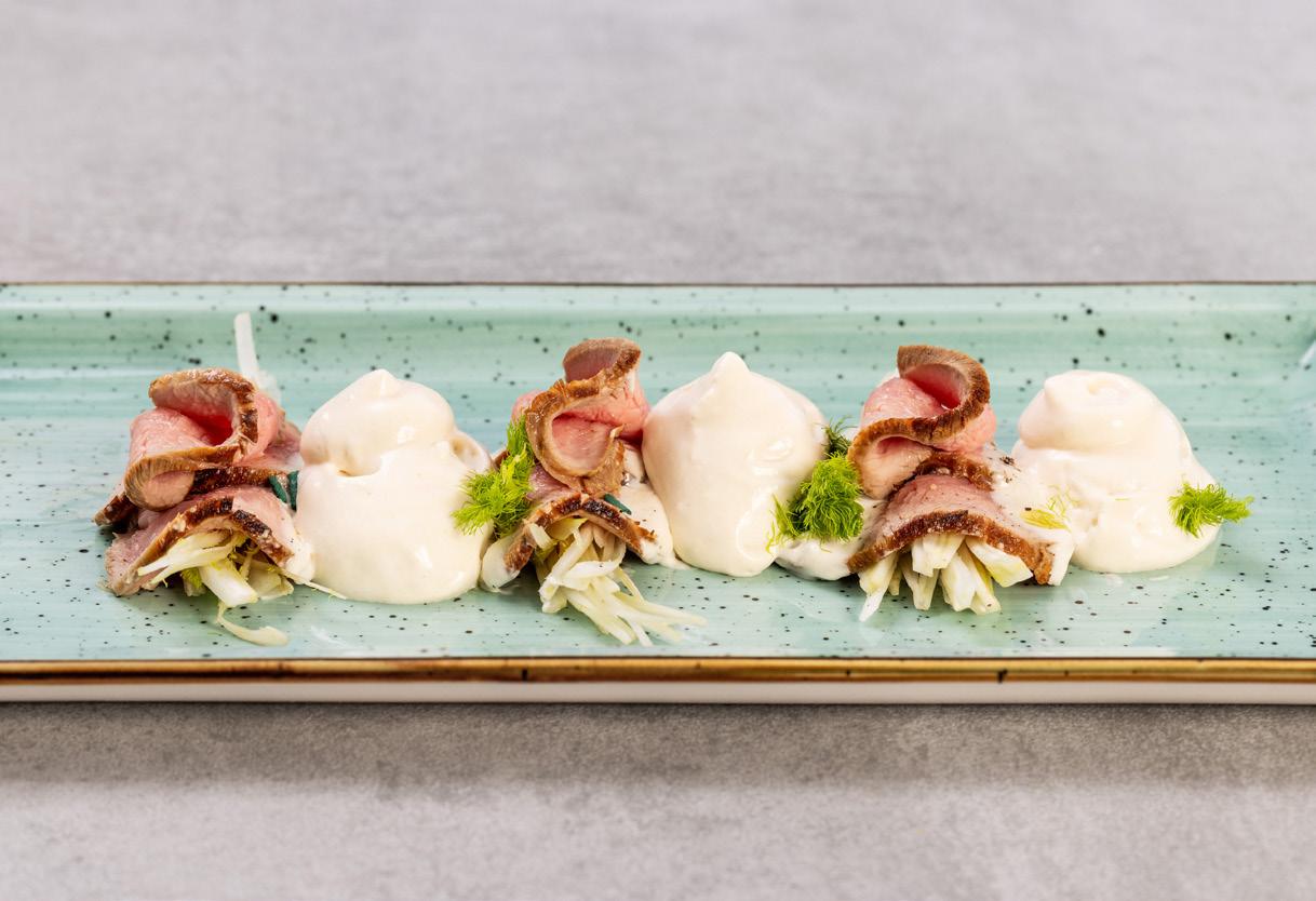 “semplicemente differente” nel contrasto di sapori. Una bellissima “Rosa” di vitello con spuma alle aringhe affumicate.