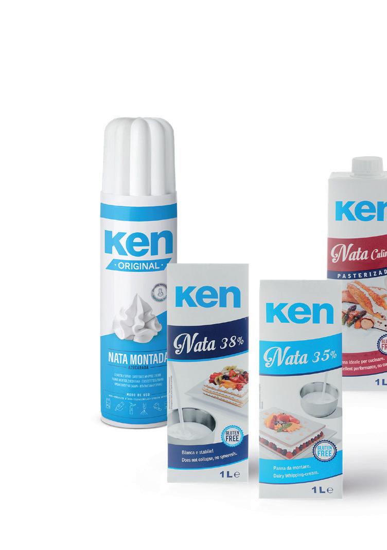 Ken Nata 38%, una panna al 38% di materia grassa senza e con carragenina la cui stabilità naturale e le performance costanti la rendono ideale per ogni tipo di preparazione, da quelle di pasticceria a quelle di cucina e di gastronomia. Ken Nata Azucarada, la zuccherata al 32,5% di grassi, dal sapore fresco e dolce. Estremamente versatili anche i Blend, da montare e per cucinare, come Ken Lactea 35%, dalla texture perfetta, stabile e lucente; Ken Lactea Sugar un altro eccellente preparato a base di panna (al 31%) e nella gamma delle 100% vegetali abbiamo Ken Presto zuccherata, ideale anche come prodotto da taglio e per decorare, adattabile a ogni esigenza con grande facilità di impiego e chiude l’offerta la 100% Vegana e senza lattosio, Ken Gold&Fresh, un prodotto già zuccherato per la pasticceria assolutamente al passo con i tempi.