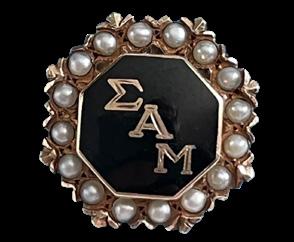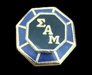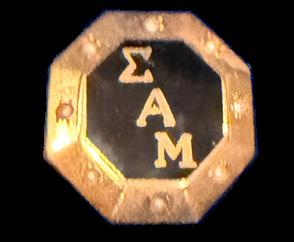 The distinct, octagonal badge of Sigma Alpha Mu is given to each new initiate. Our gold letters Σ A M shine off the black octagon in the center of the badge.
