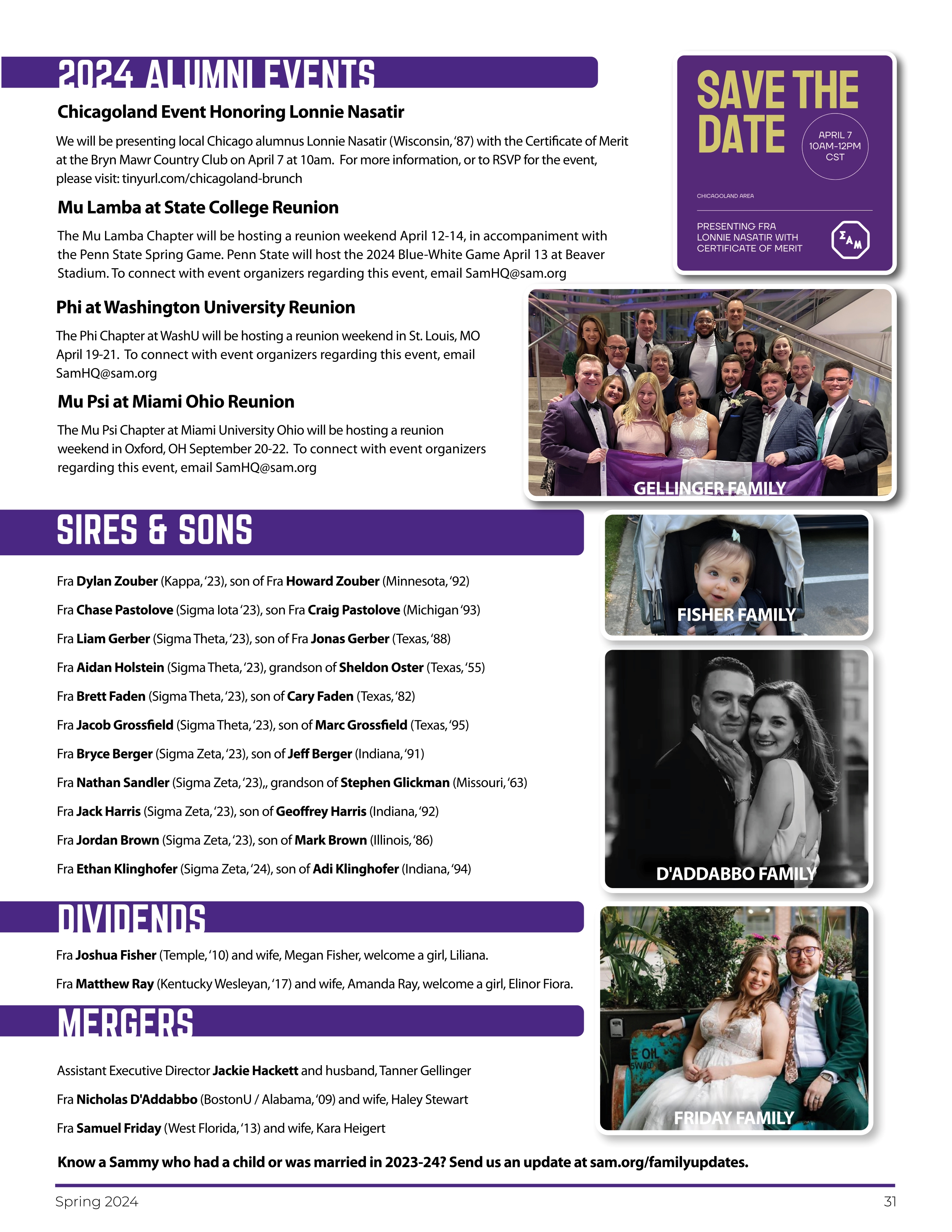 1 minute readAlumni Events, Sires & Sons, Dividends, and Mergersfrom Octagonian- Spring 2024by SigmaAlphaMuNext ArticleSummit Against HateMore articles from this publication:Summit Against Hate2minpage 30Chapter Eternal1minpages 28-29Around The Chapters1minpages 12-21Richie Williamson- A Model & Exemplary Volunteer1minpage 10Have You Heard- Fra Krause1minpage 7Have You Heard- Fra Nasatir2minpage 7Have You Heard- Fra Zupnik2minpage 6NEW DIRECTORS JOIN SIGMA ALPHA MU FOUNDATION BOARD1minpage 24Inaugural Kaplan Safe Campus Awards Showcase Sammy Chapters at Their Best!2minpage 24Show moreThis article is from:Octagonian- Spring 2024