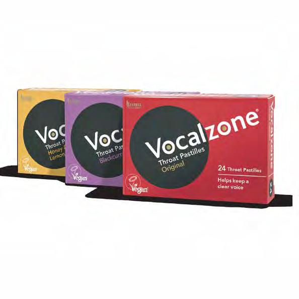 Voca l zone Th roat Pas t illes a re specifically fo r mulated to soothe vocal d iscomfort and throat irrita ti on f rom excess i ve si ng i ng, speak i ng or smoking . Fast and effective relief. Vegan, gluten
