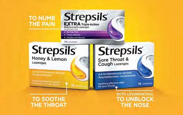 References: 1. McNally D, et al. Int J Clin Pract. 2010;64:194–207 2. Wade AG, et al. BMC Fam Pract. 2011;12:6. 3. Matthews D, et al. Int J Gen Med. 2018; 11:451–456. 4. Oxford JS, et al. Antivir Chem Chemother. 2005;16:129-134. 5. Shephard A, et al. Antiviral Res. 2015;123:158-162. 6. Morokutti-Kurz M, et al. Int J Gen Med. 2017;10:53–60. 7. Weckmann G, et al. Int. J Clin Pract. 2017;71(10) 8. EMC, electronic medicines compendium. Strepsils Honey & Lemon. Updated April 2021. Accessed June 2025. Available at https://www.medicines.org.uk/emc/product/5606 9. EMC, electronic medicines compendium. Strepsils Extra Triple Action Blackcurrant Lozenges. Updated August 2021. Accessed June 2025. Available at https://www.medicines.org.uk/emc/product/5601 10. EMC, electronic medicines compendium. Strepsils Sore Throat and Cough. Updated May 2021. Accessed June 2025. Available at https://www.medicines.org.uk/emc/product/8142