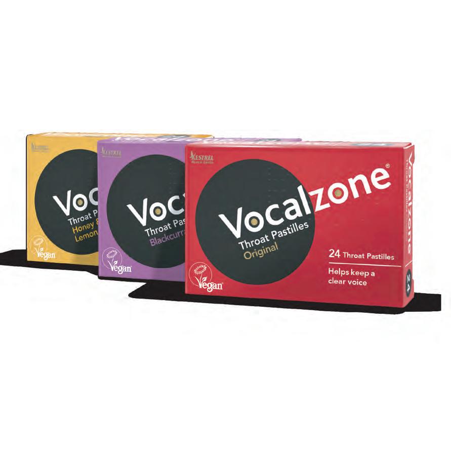 Voca l zone Th roat Pas t illes a re specifically fo r mulated to soothe vocal d iscomfort and throat irrita ti on f rom excess i ve si ng i ng, speak i ng or smoking . Fast and effective relief. Vegan, gluten