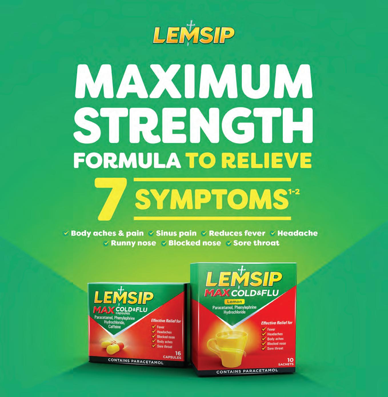 References: 1. EMC, electronic medicines compendium. Lemsip Max Cold & Flu Lemon. Updated March 2025. Accessed June 2025. Available at https://www.medicines.org.uk/emc/product/5612/smpc 2. EMC, electronic medicines compendium. Lemsip Max Cold & Flu Capsules. Updated March 2025. Accessed June 2025. Available at https://www.medicines.org.uk/emc/product/5617/smpc.